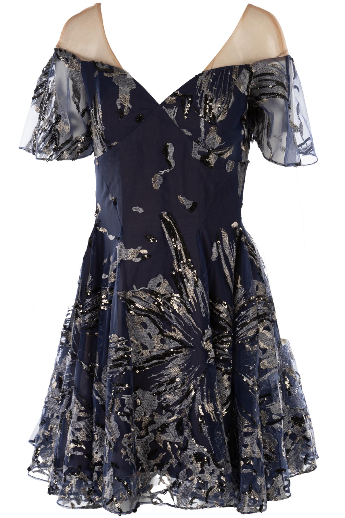 MARCHESA NOTTE NAVY TULLE MINI DRESS US 4 UK 8