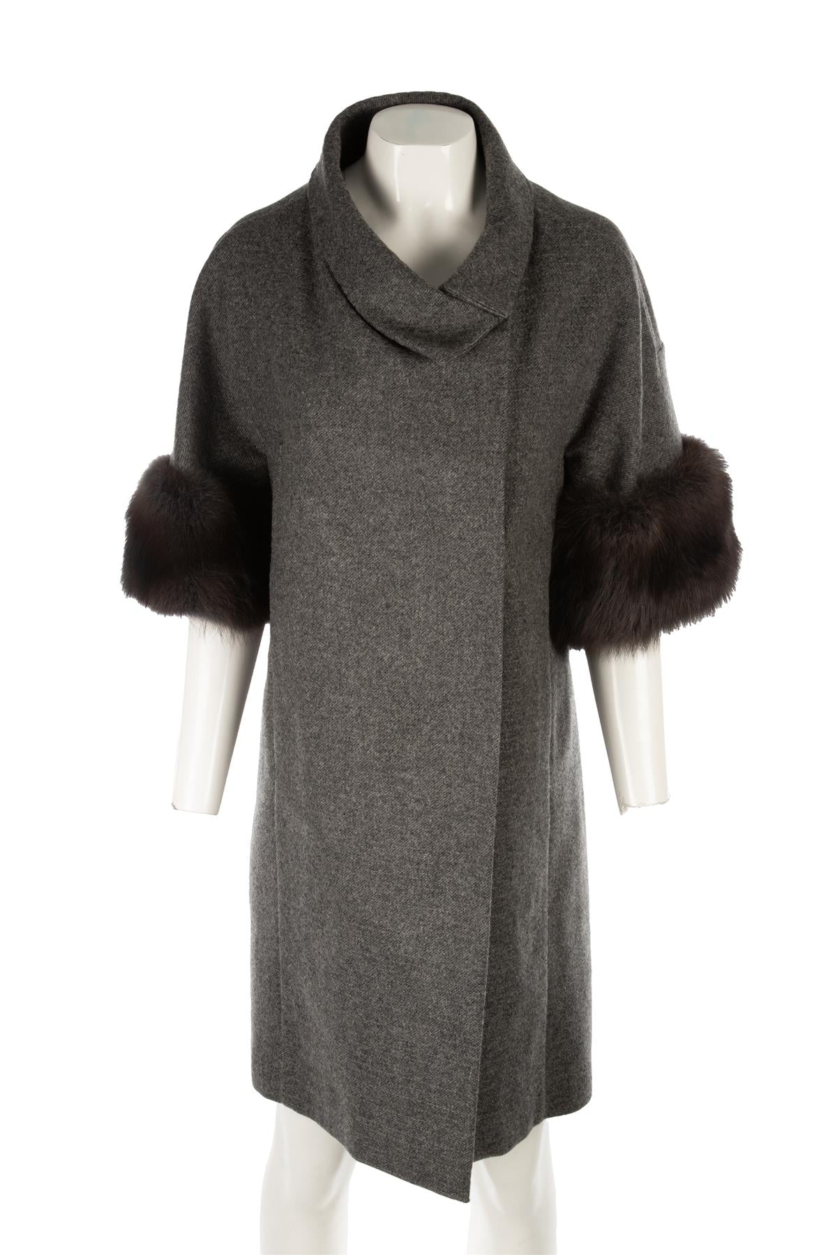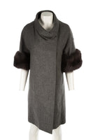 Marni Grey Wool Coat. Grey. Short Sleeve. Mock Neck. Snap button fastening - Front. 90% Wool, 10% Nylon. IT 38 (UK 6, US 2, FR 34). Shoulder to Shoulder: 19 in. Bust: 40 in. Waist: 40 in. Hips: 46 in. Length: 38 in.