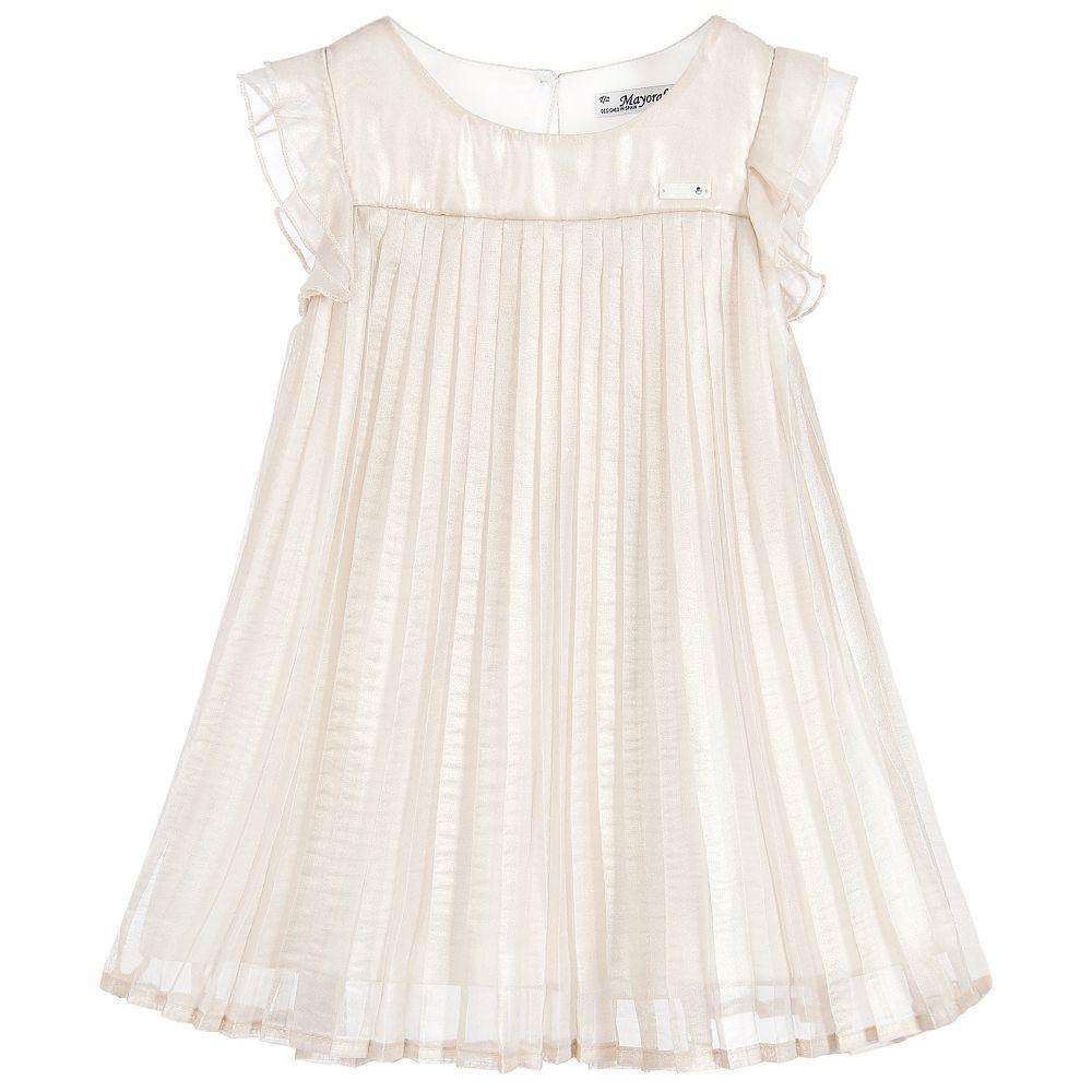 MAYORAL CHIC GIRLS GOLD CHIFFON PLEATED DRESS 5 YEARS