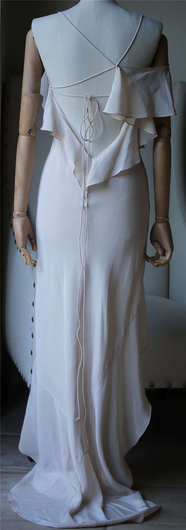 MICHELLE MASON ASYMMETRICAL RUFFLE GOWN US 0 UK 4