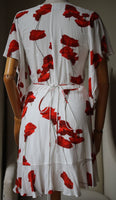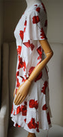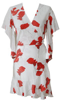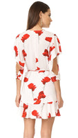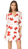 - Bright poppy flowers and faint dots accent this lightweight Michelle Mason wrap dress.