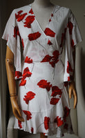 MICHELLE MASON FLUTTER SLEEVE WRAP MINI DRESS US 6 UK 10
