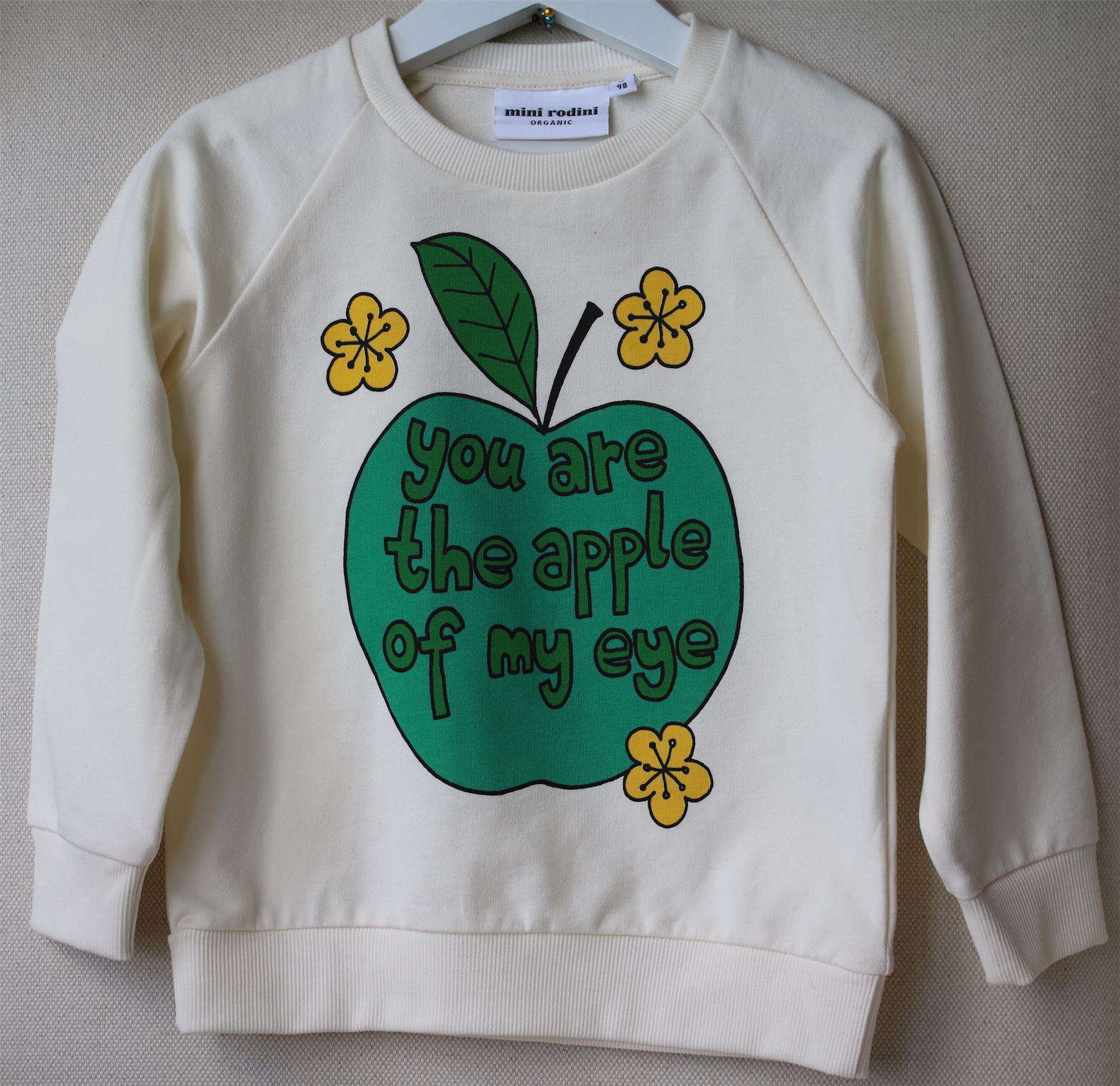 With a fun 'apple of my eye', this pale ivory sweatshirt by Mini Rodini. Made in lightweight organic cotton jersey, this top is suitable for boys and girls.