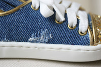 - Rendered in premium nappa leather, this cute pair is detailed with the distressed denim uppers and signature bunny ears.