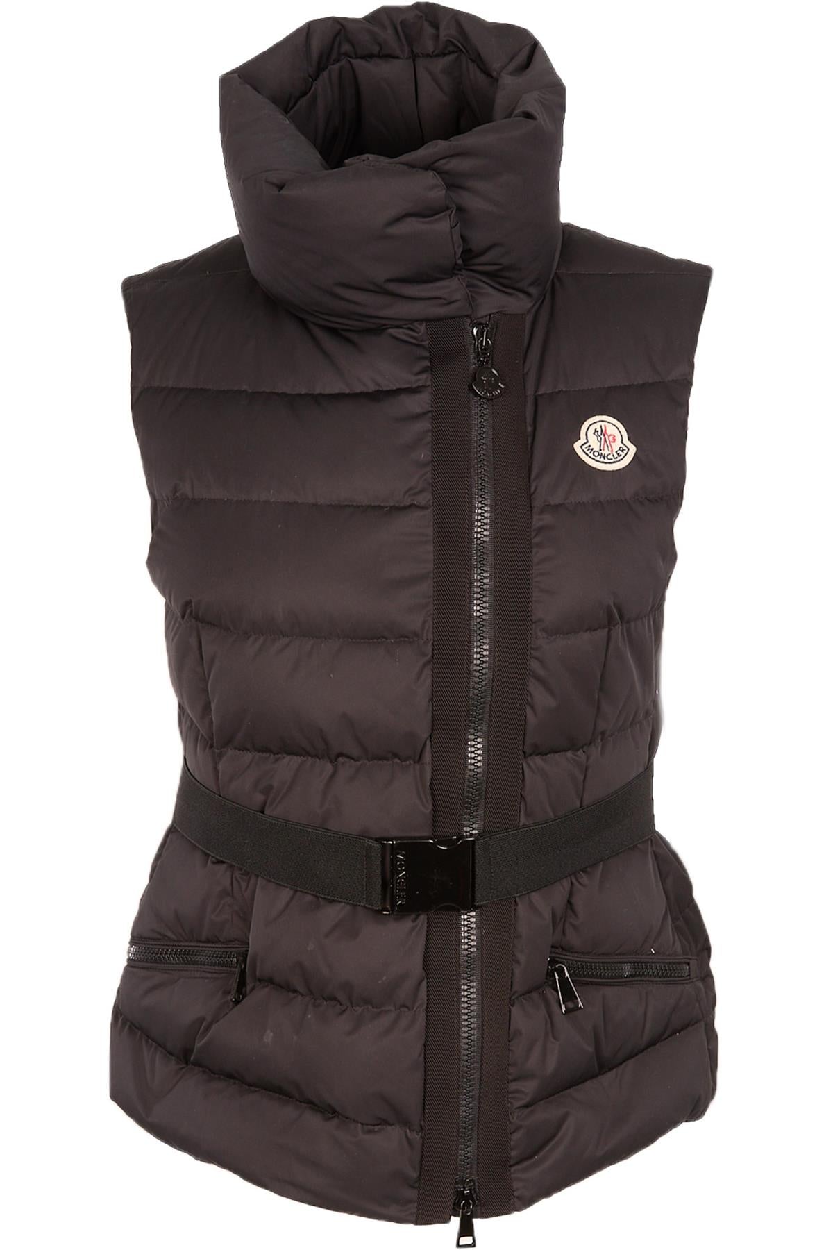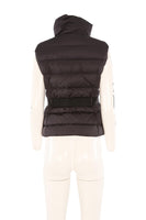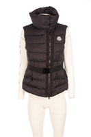 Moncler Black Padded Down Gilet. Black. Sleeveless. Turtleneck. Zip fastening - Front. 100% Polyester, 100% Polyamide. 2 (UK 10, US 6, FR 38, IT 42). Shoulder to Shoulder: 15 in. Bust: 38 in. Waist: 35 in. Hips: 38 in. Length: 22 in.