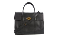 Mulberry Black Bayswater Leather Tote Bag. Black. Push lock fastening - Front. Does not come with - dustbag or box. Bayswater. Height: 9.5 in. Width: 13 in. Depth: 6.5 in. Handle drop: 4 in. Strap drop: 17.5 in.