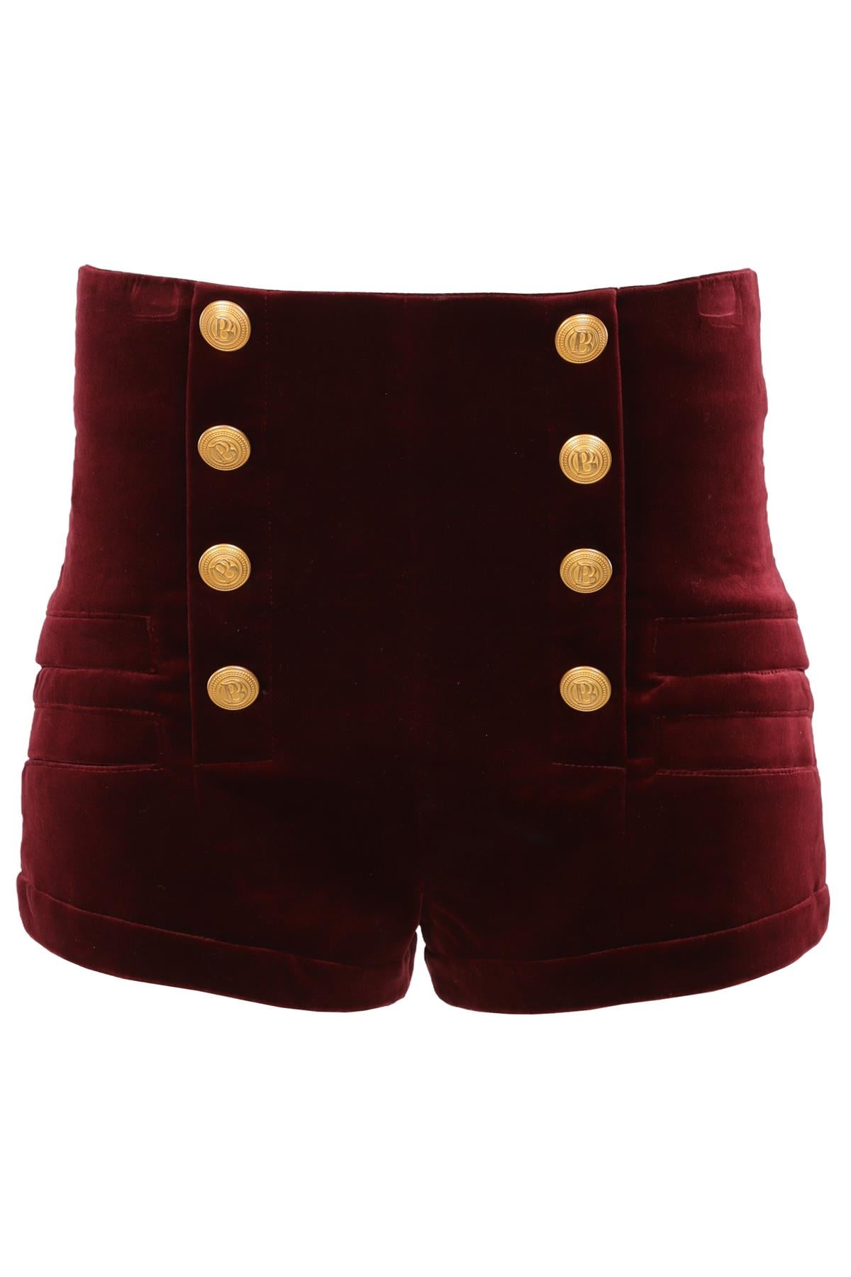 PIERRE BALMAIN BURGUNDY VELVET SHORTS FR 40 UK 12
