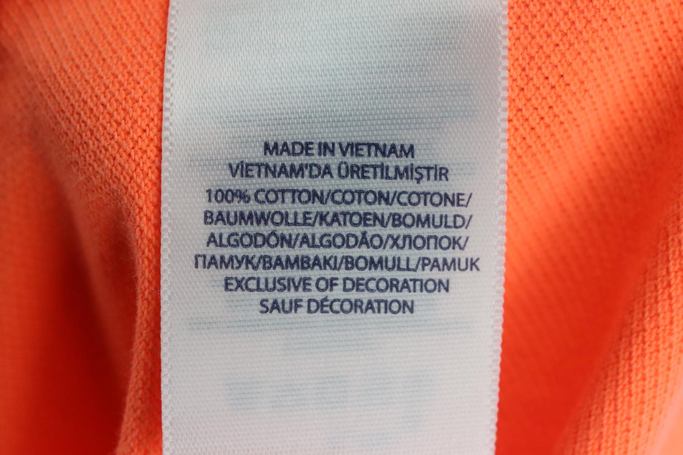 • Made from bright-orange cotton-piqué with large navy embroidered horse.