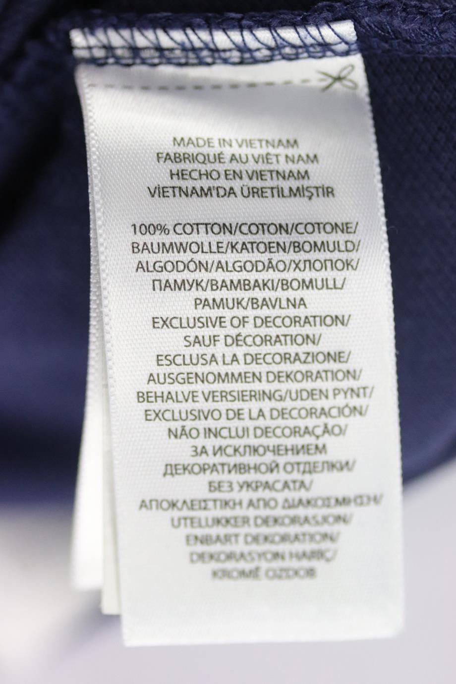 - Made from navy cotton-pique with light-blue embroidered horse.
