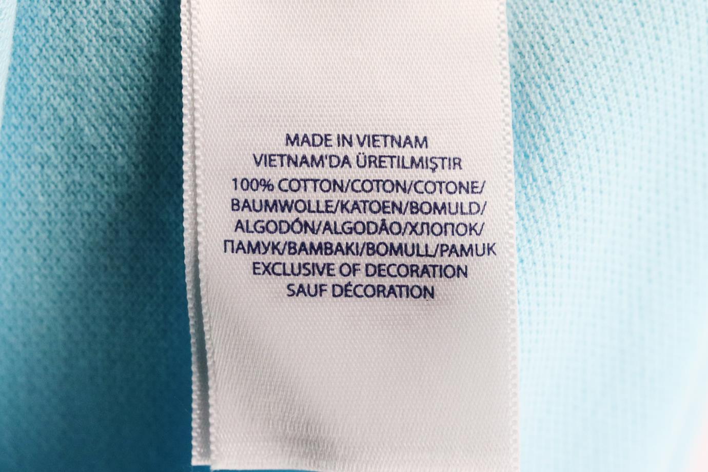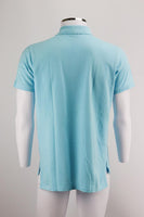 - Made from pale-blue cotton-pique with yellow embroidered horse.