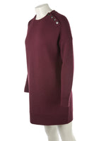 Sezane Burgundy Wool Mini Dress. Burgundy. Long Sleeve. Crewneck. Slips on. 100% Merino wool. Medium (UK 10, US 6, FR 38, IT 42). Bust: 36 in. Waist: 37 in. Hips: 38 in. Length: 31 in.