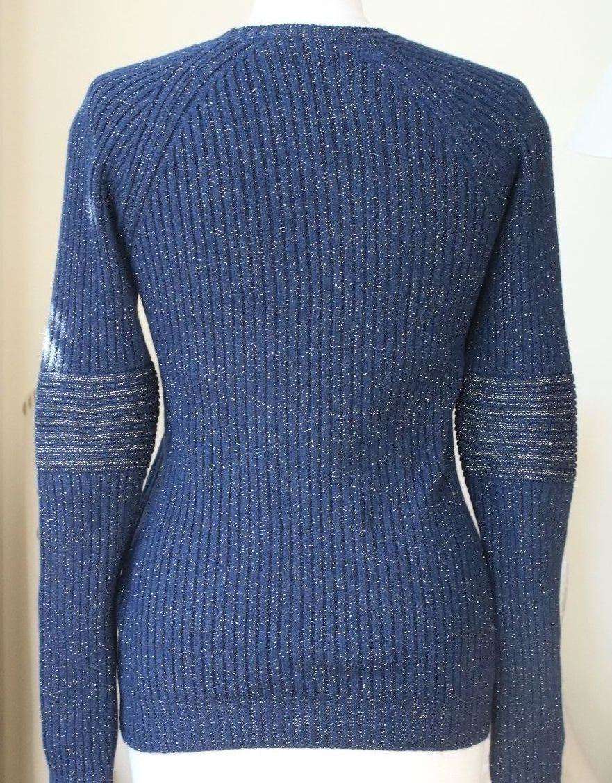 SIRAN RIB REGULAR NAVY CASHMERE AND LUREX SWEATER IT 40 UK 8