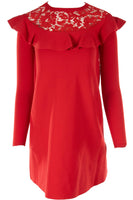 Valentino Red Knit Mini Dress. Red. 3/4 Sleeve. Boat Neck. Button fastening - Back. 83% Viscose, 17% Polyester. XSmall (UK 6, US 2, FR 34, IT 38). Bust: 31 in. Waist: 38 in. Hips: 49 in. Length: 30.5 in.