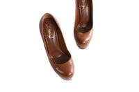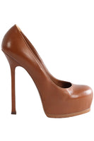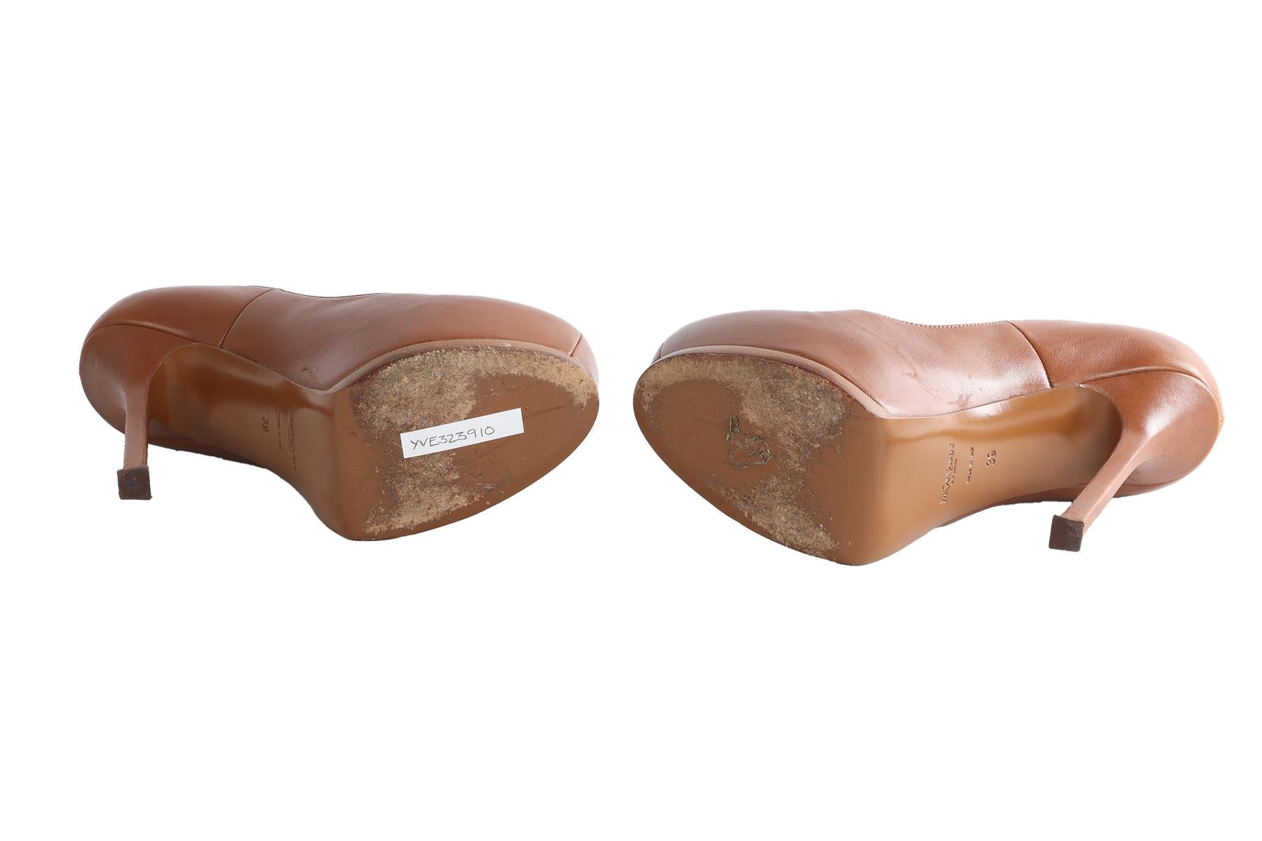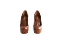 YVES SAINT LAURENT BROWN LEATHER PLATFORM PUMPS EU 39 UK 6 US 9