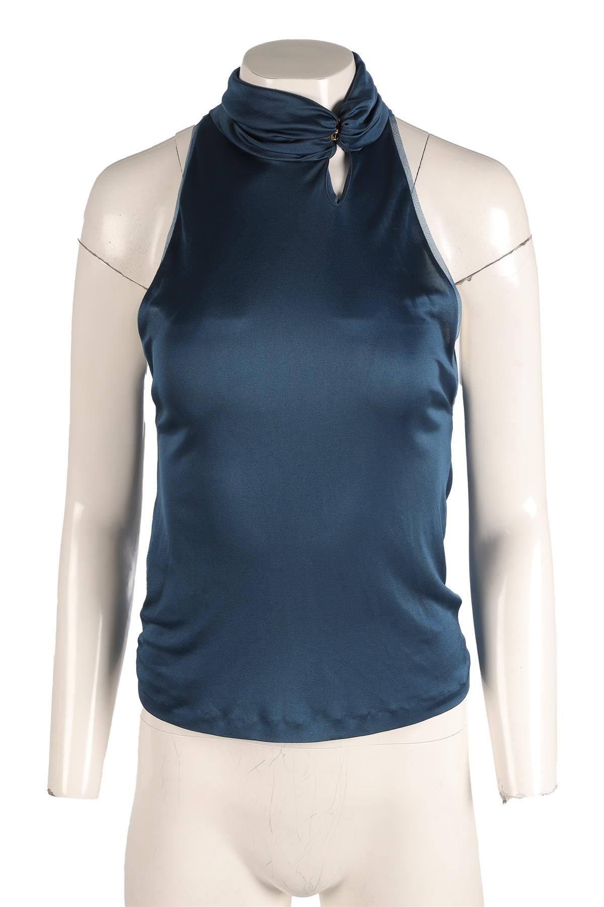 YVES SAINT LAURENT RIVE GAUCHE BLUE JERSEY TOP SMALL