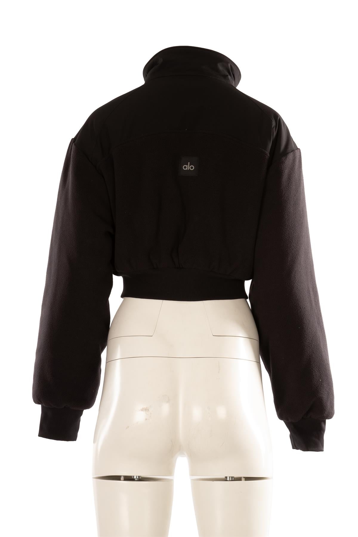 Alo Yoga Black Fleece Jacket. Black. Long Sleeve. Mock Neck. Zip fastening - Front. 100% Polyester, 86% Polyester, 14% Elastane. Medium (UK 10, US 6, FR 38, IT 42). Bust: 40 in. Waist: 28 in. Hips: 28 in. Length: 19 in.