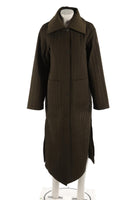 Alo Yoga Green Shell Coat. Green. Long Sleeve. Mock Neck. Pull on. 90% Recycled Cashmere, 10% Cashmere. Medium (UK 10, US 6, FR 38, IT 42). Shoulder to Shoulder: 17 in. Bust: 42 in. Waist: 44 in. Hips: 46 in. Length: 48 in.