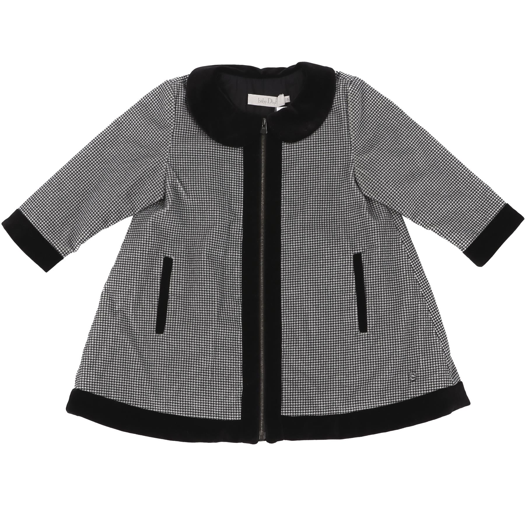 Baby Dior Black Baby Girls Coat. Black and white. Long Sleeve. Crewneck. Zip fastening - Front. 98% Cotton, 2% Elastane, 100% Cotton, 100% Polyester. 18 Months.