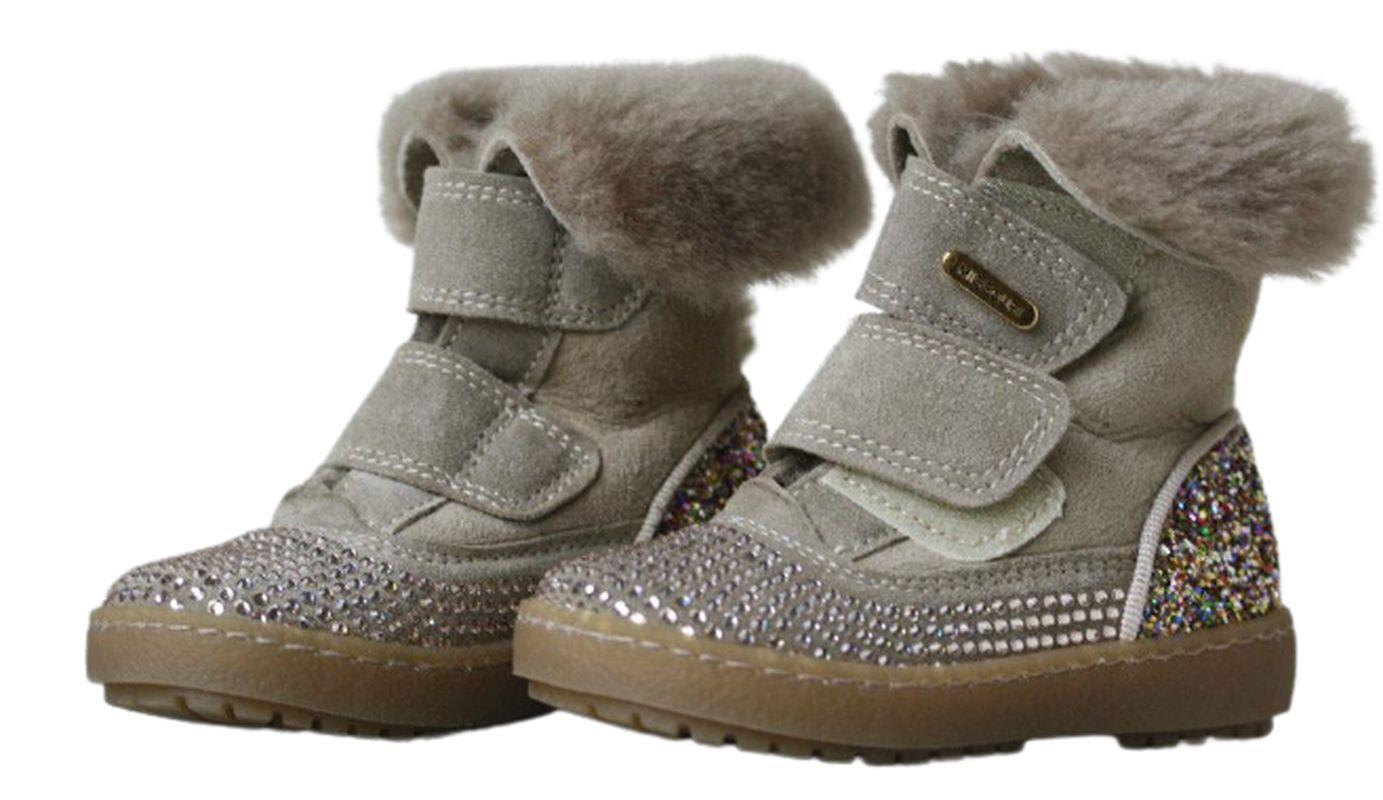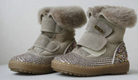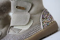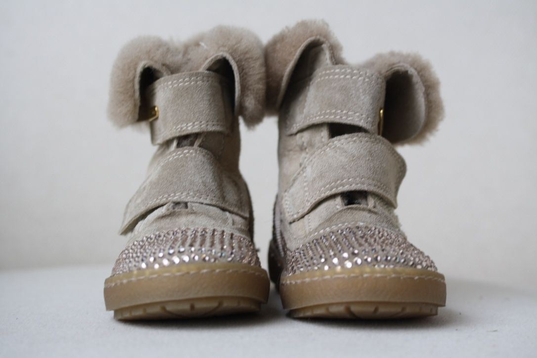 MISSOURI BABY BEIGE SHEEPSKIN FUR LINED SUEDE DIAMANTE BOOTS EU 21 UK 4.5