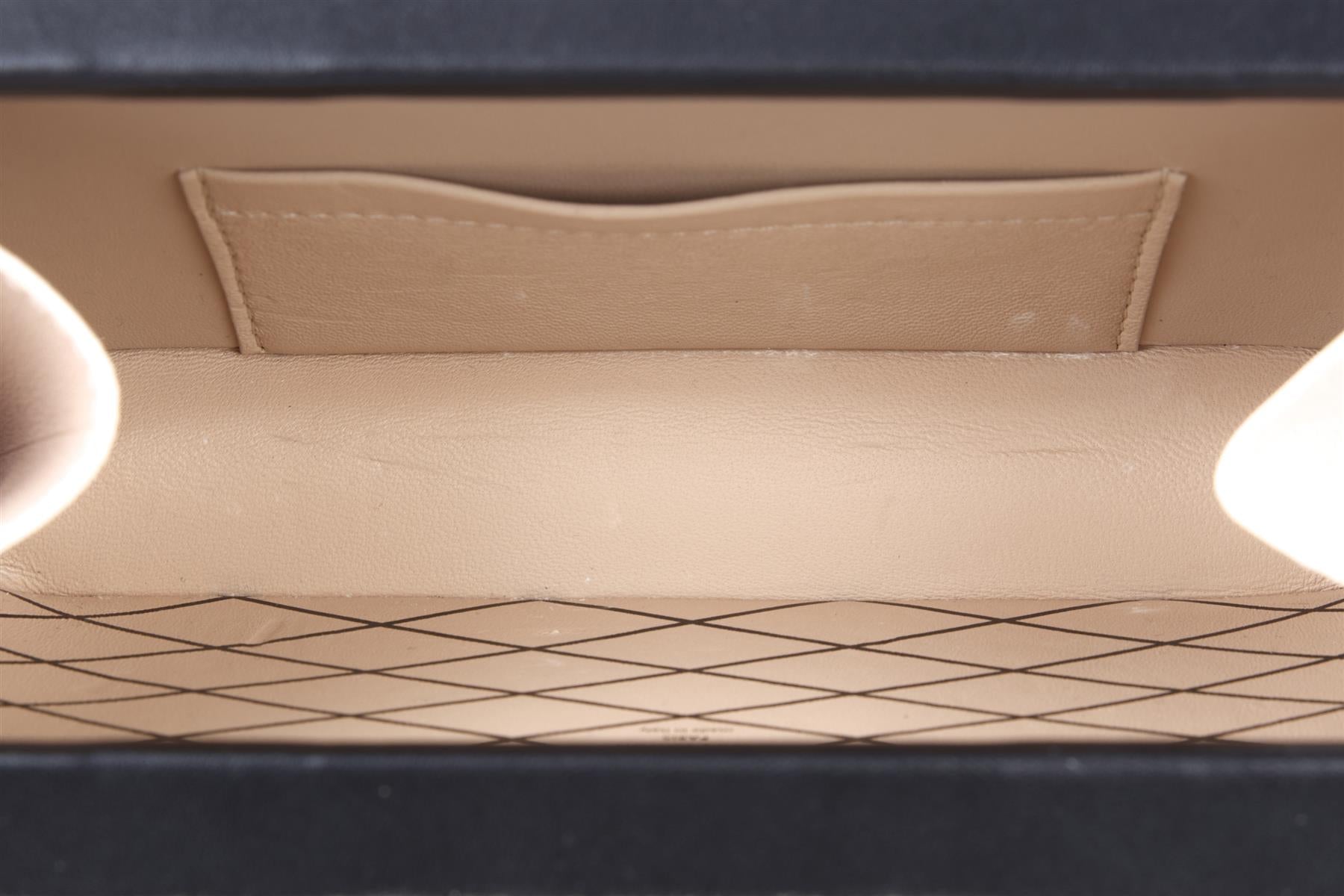 Very good condition - Worn once. Few light scratches to hardware. Light scratches to corners. Light indentations to interior material; see pictures.