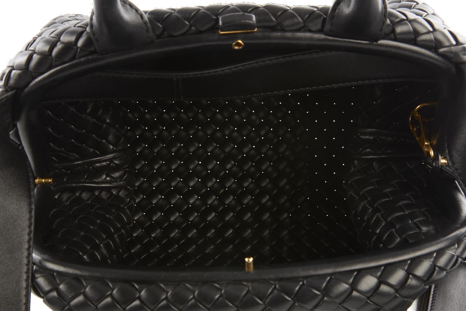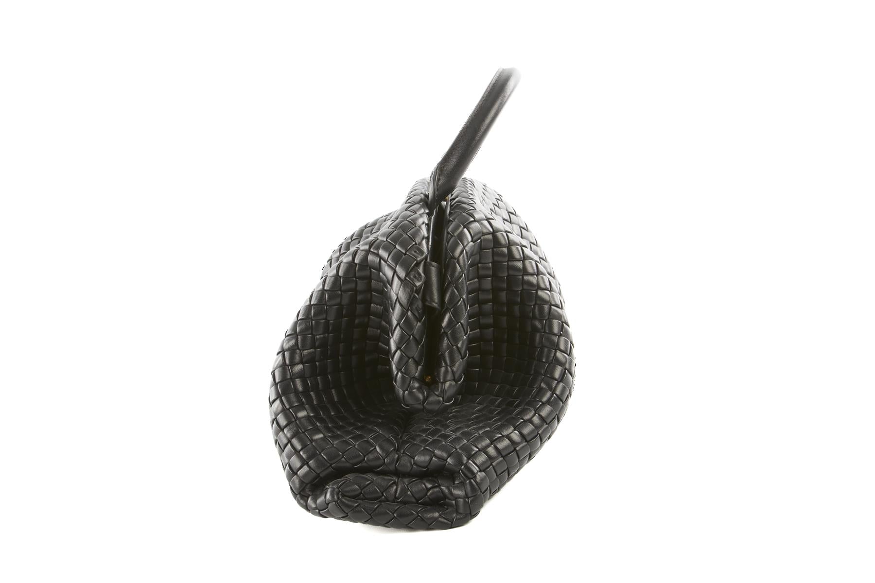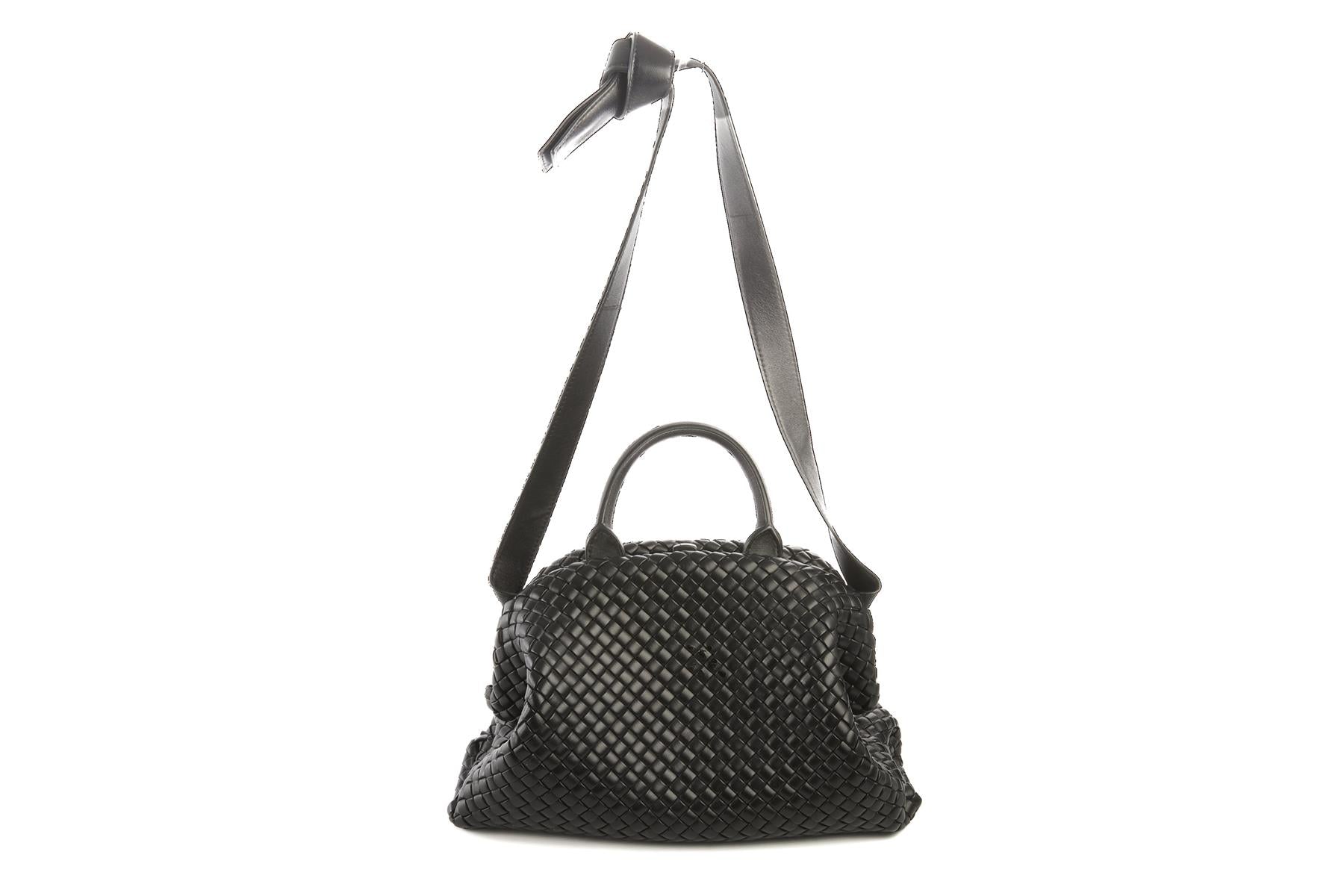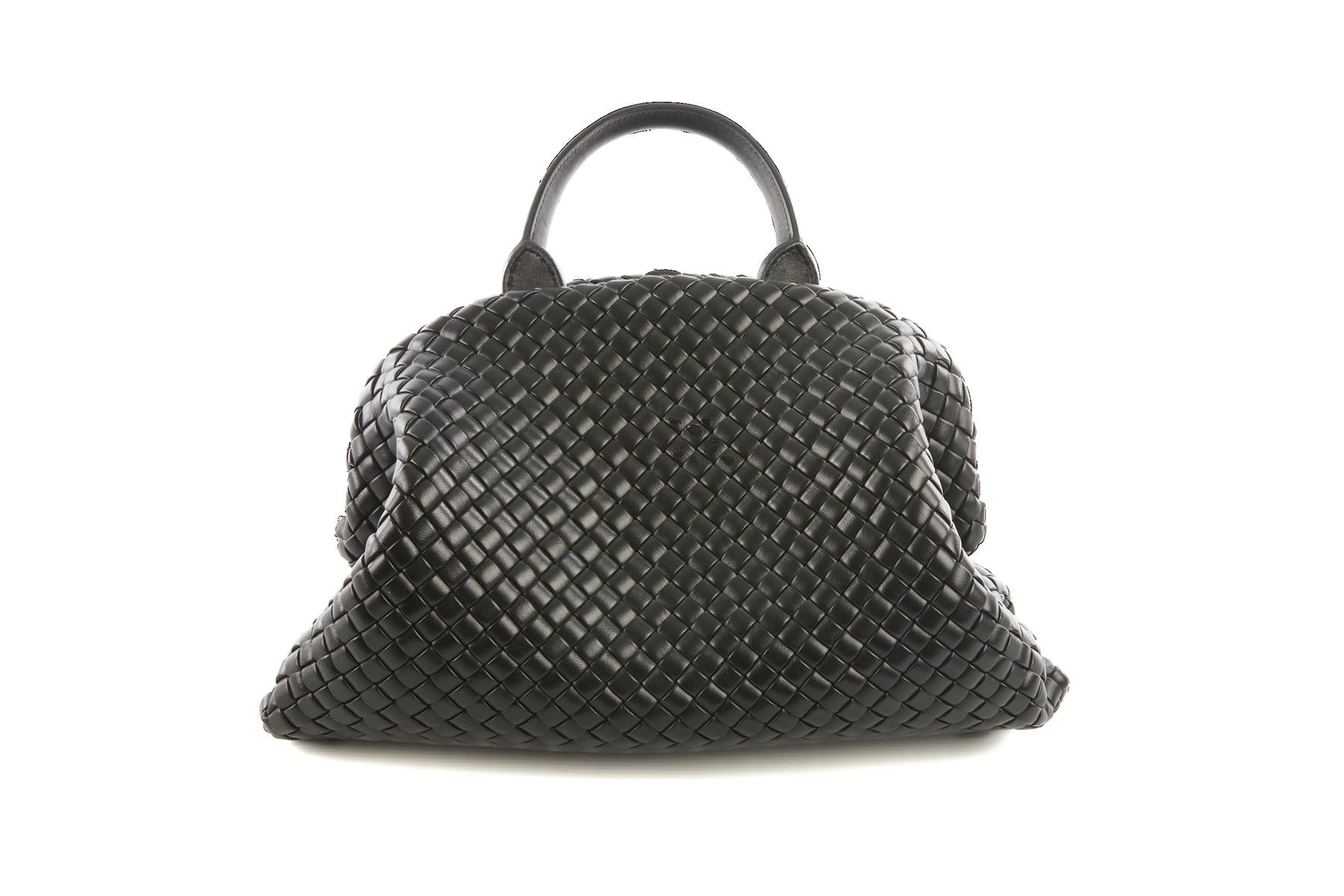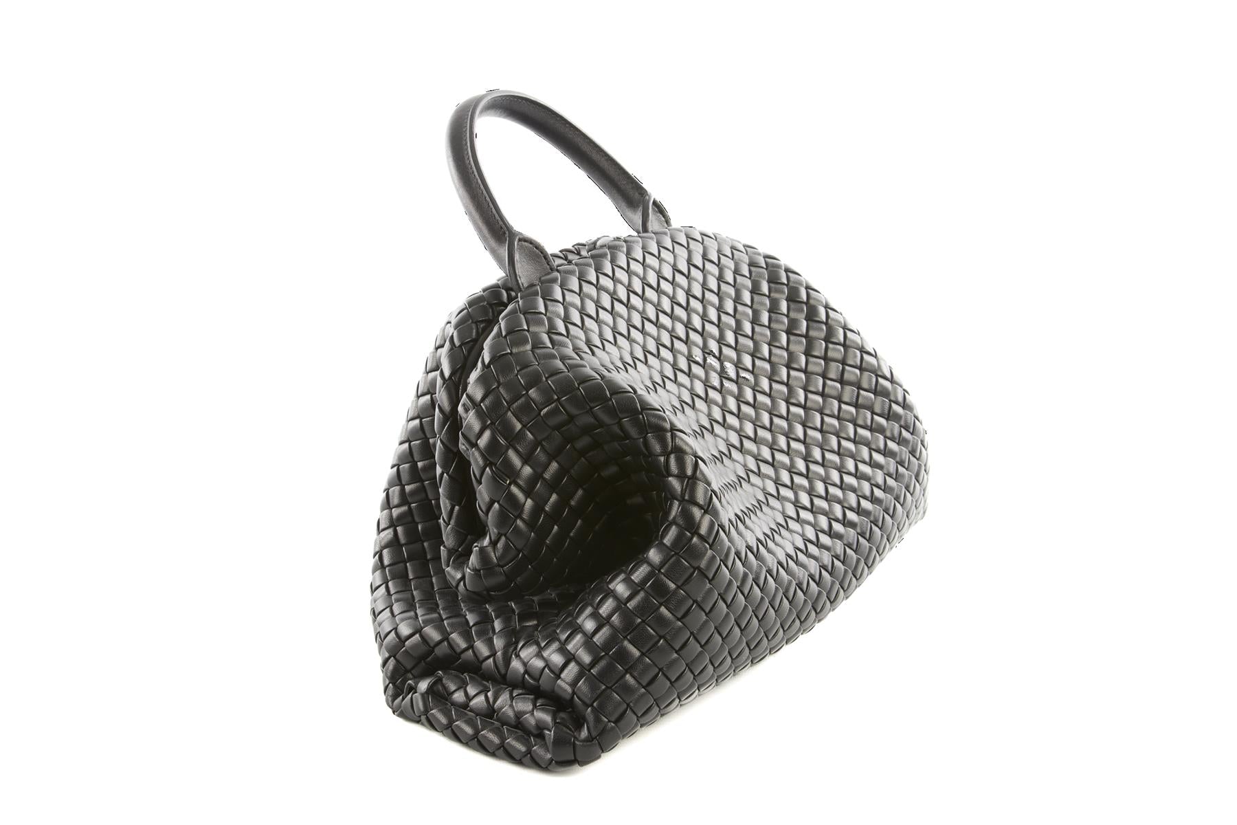 Bottega Veneta Black Handle Medium Intrecciato Leather Tote Bag. Black. Push lock fastening - Top. Does not come with - dustbag or box. One Size. Height: 9 in. Width: 14 in. Depth: 8 in. Handle drop: 4 in. Strap drop: 15 in.