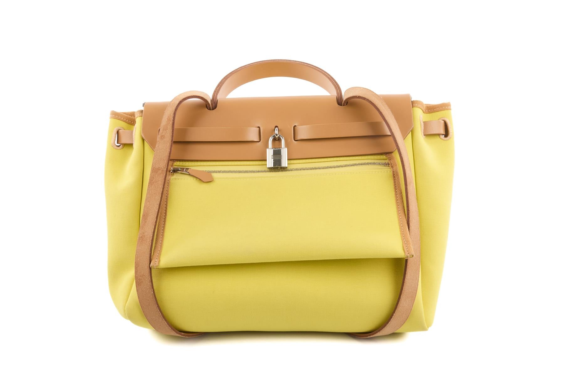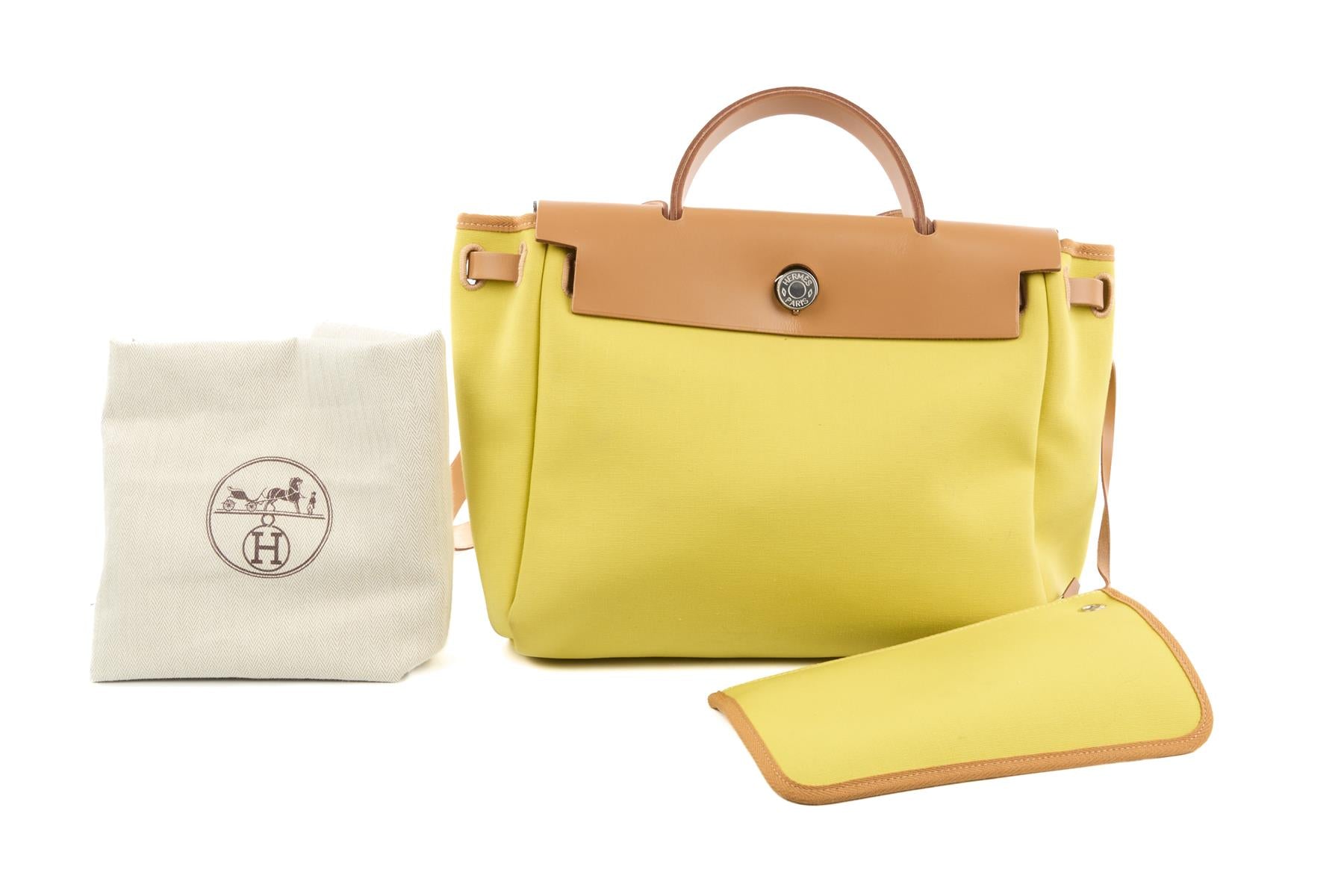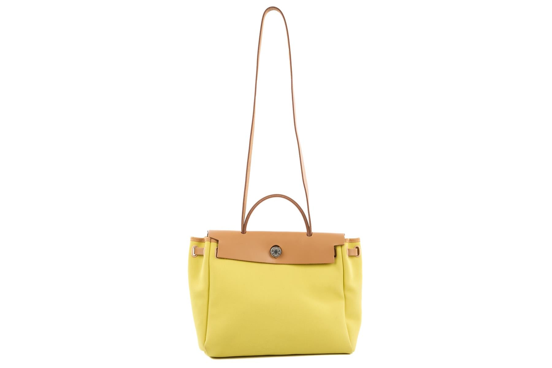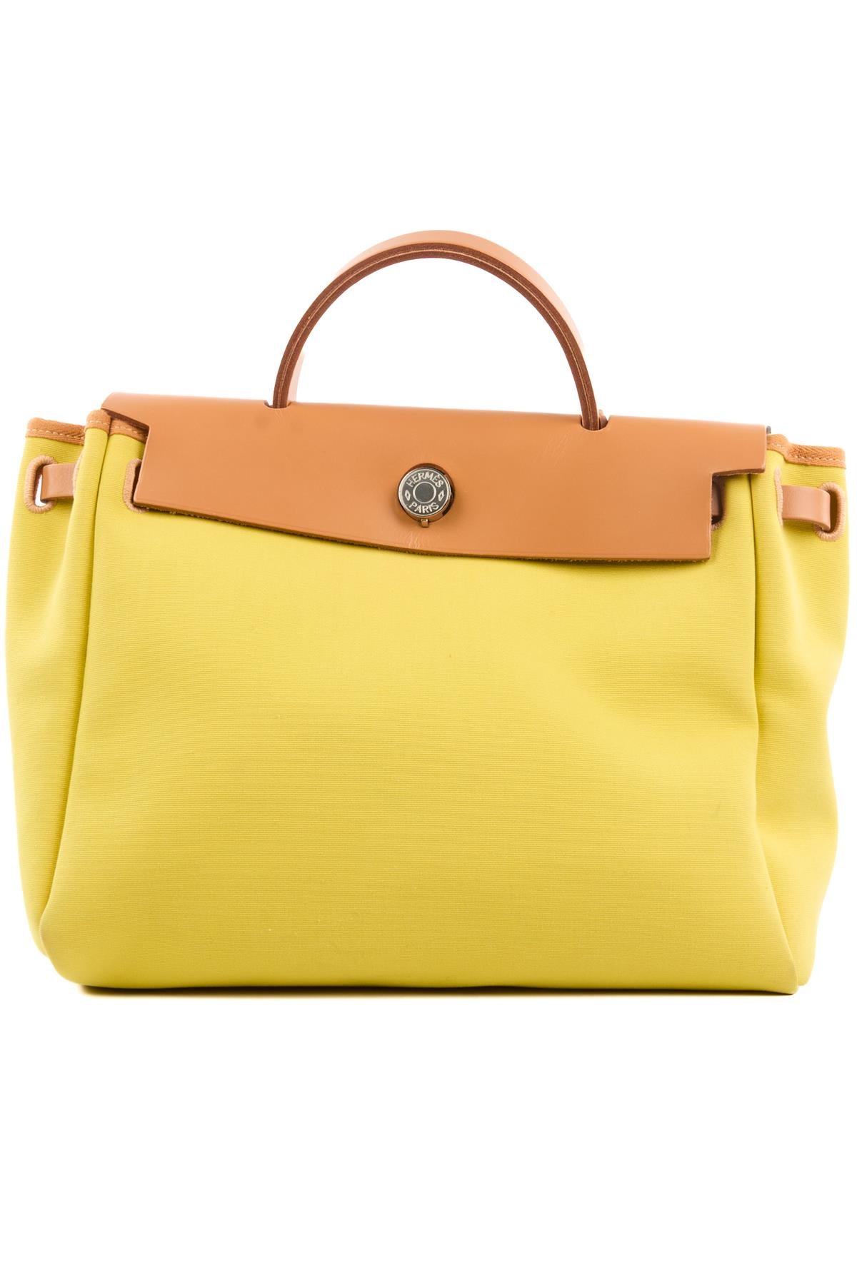 Hermès Yellow 2020 Herbag 31 Canvas Shoulder Bag In Jaune Citron. Yellow and brown. Push lock fastening - Front. Comes with - dustbag. Herbag. Height: Bag: 10 in Purse: 5.5 in. Width: Bag: 12 in Purse: 9 in. Depth: Bag: 4 in Purse: 1 in. Handle drop: 3 in. Strap drop: 18.5 in.