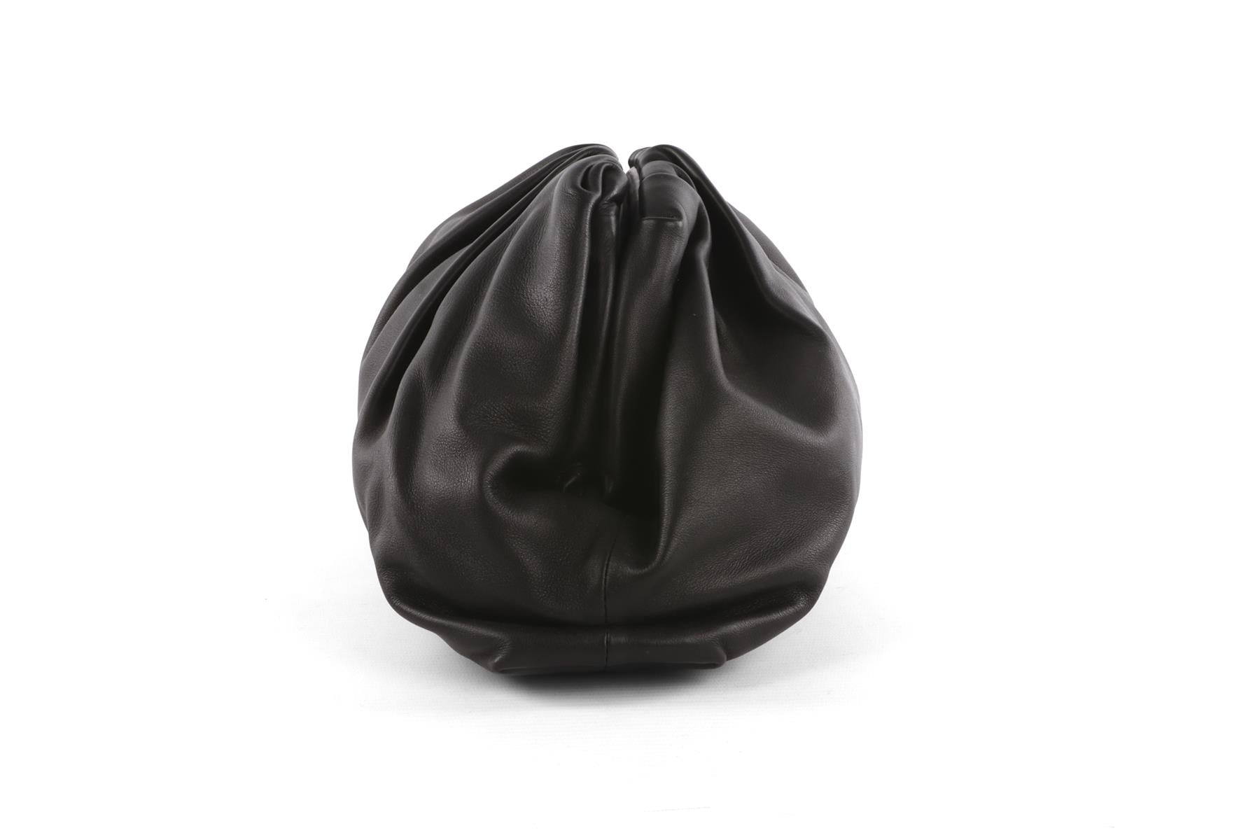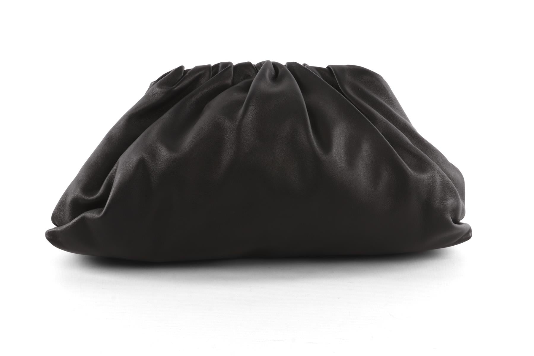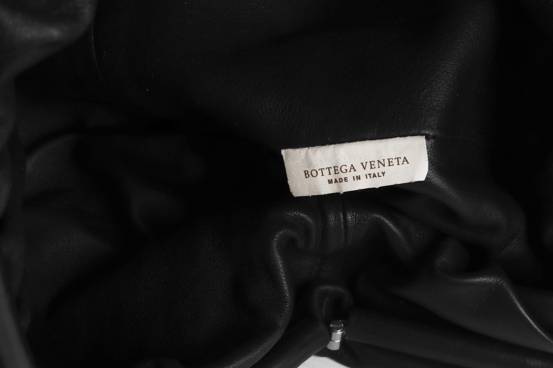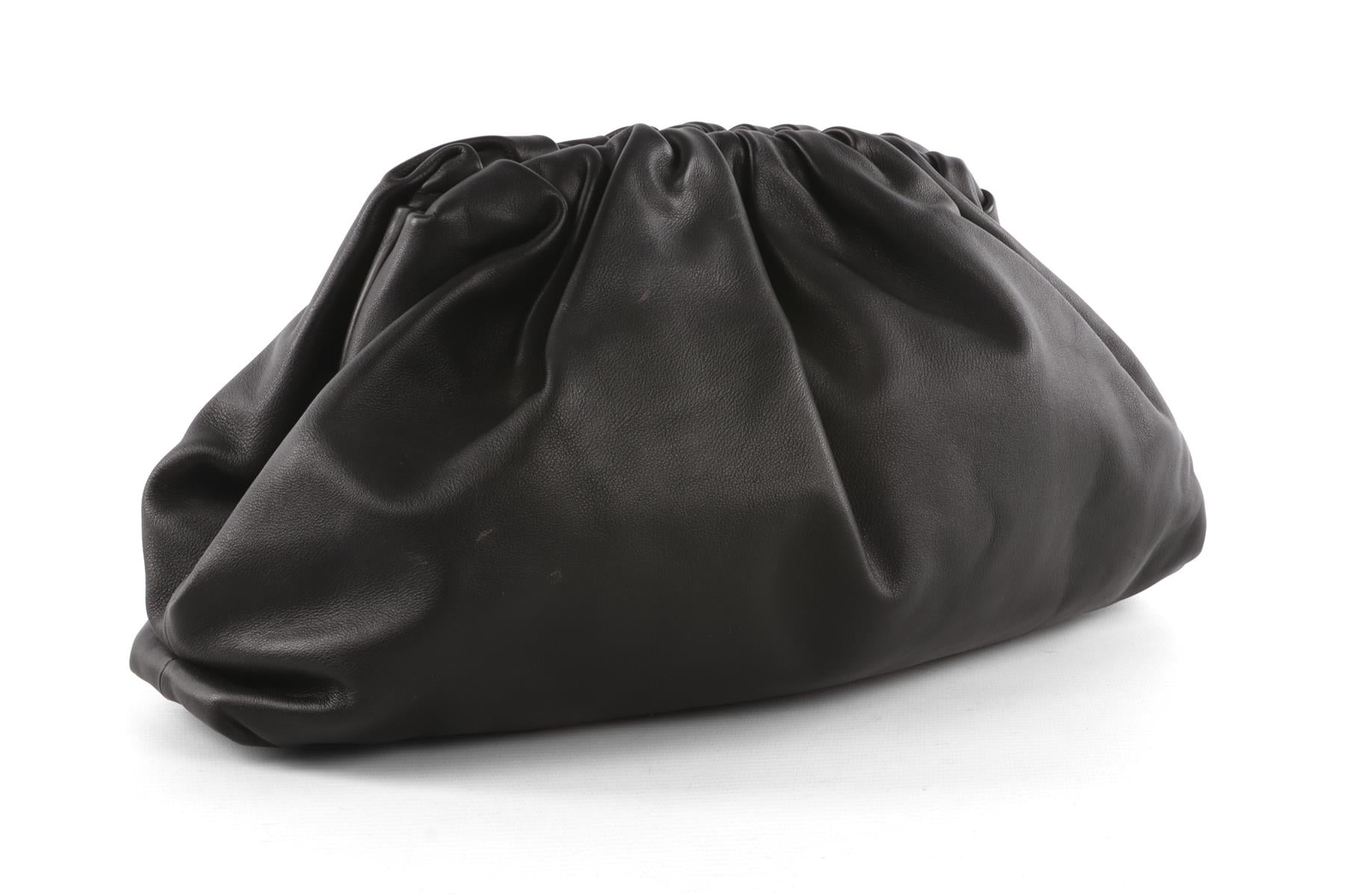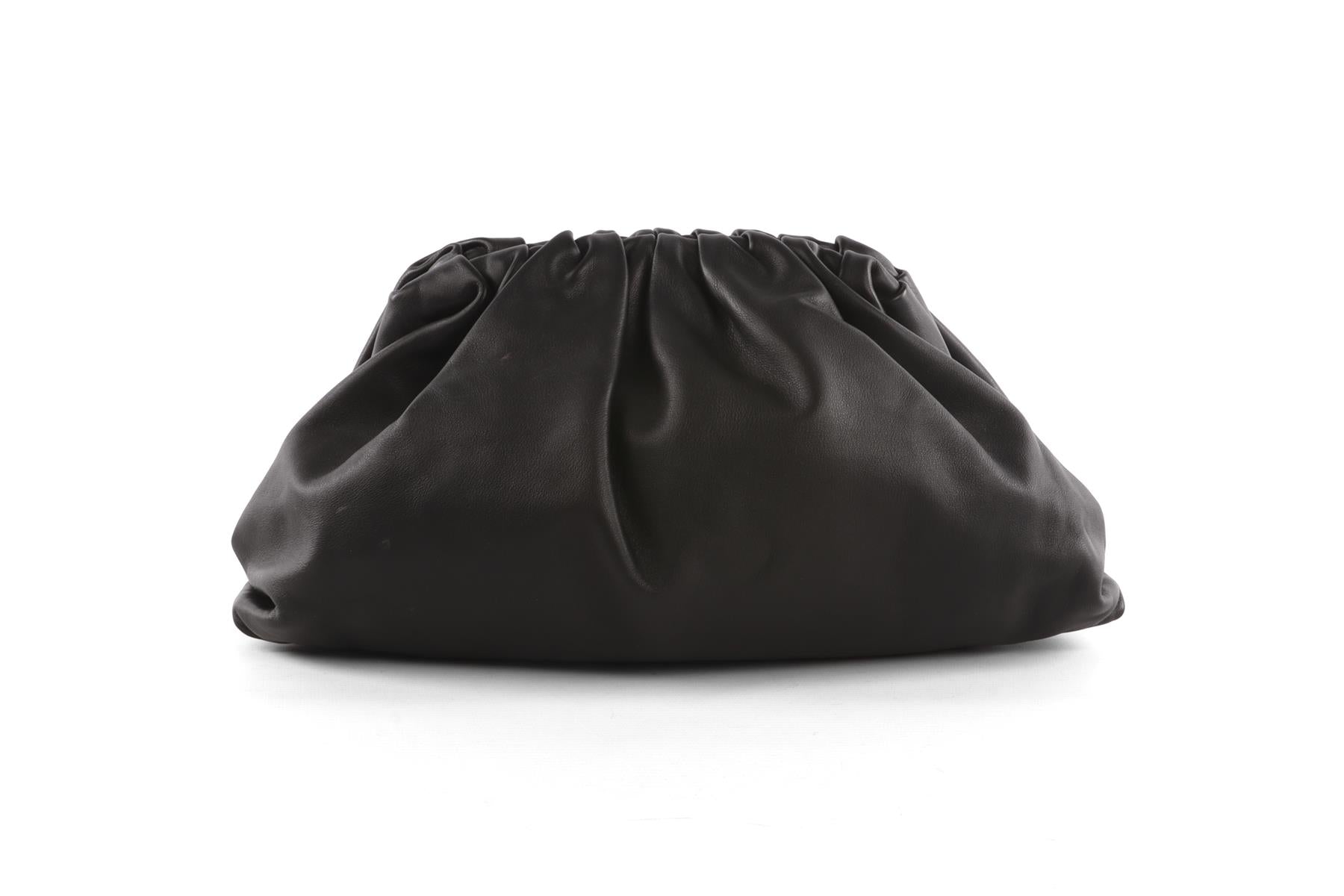Bottega Veneta Black Pouch Leather Clutch. Black. Magnetic fastening - Top. Comes with - dustbag. Height: 8.5 in. Width: 15.5 in. Depth: 8.5 in.