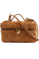 BOTTEGA VENETA TAN BANG BANG VANITY MINI INTRECCIATO SUEDE TOTE BAG