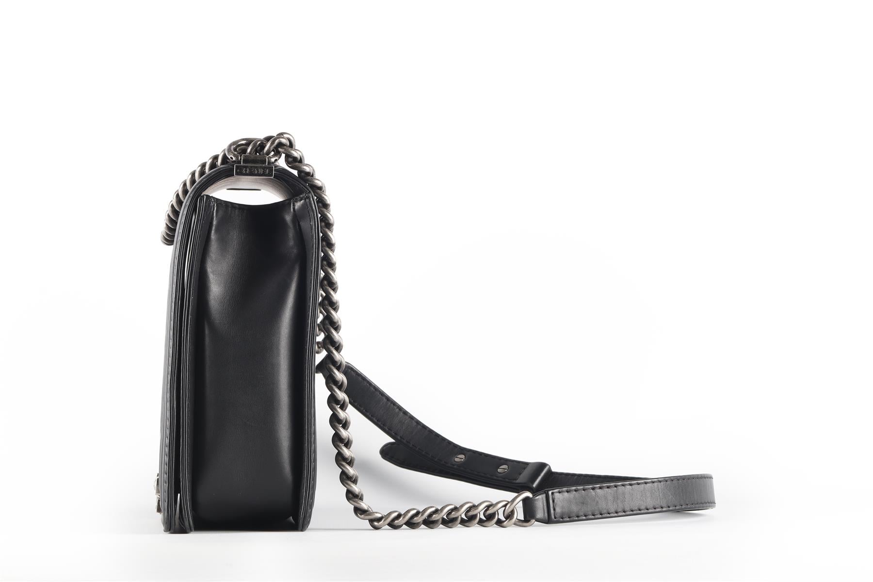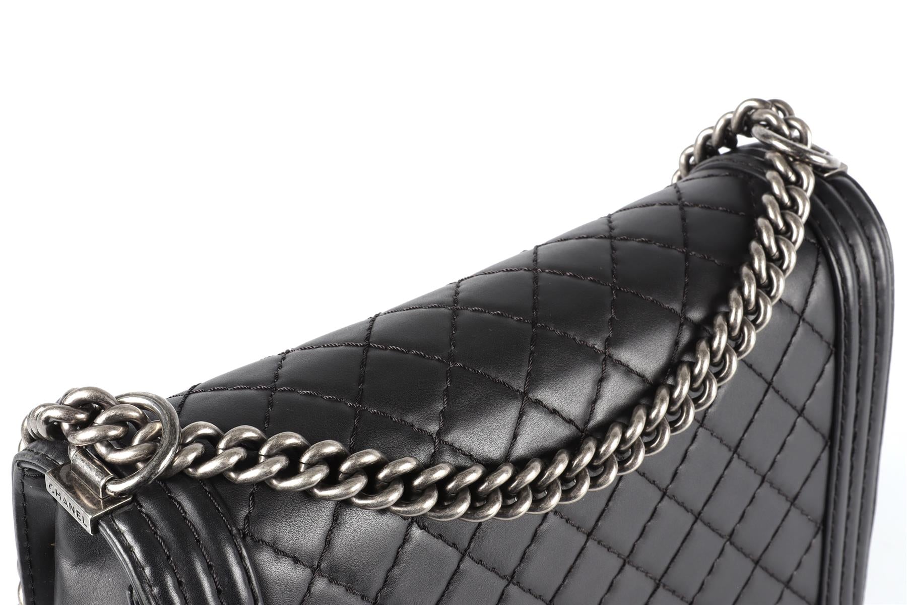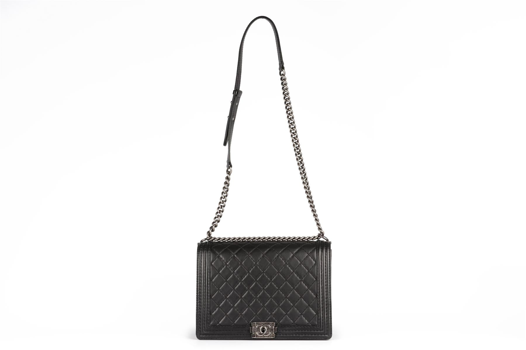 - Chanel Black 2014 Boy Large Quilted Leather Shoulder Bag.