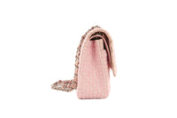 CHANEL PINK 2003-2004 CLASSIC DOUBLE FLAP MEDIUM TWEED SHOULDER BAG