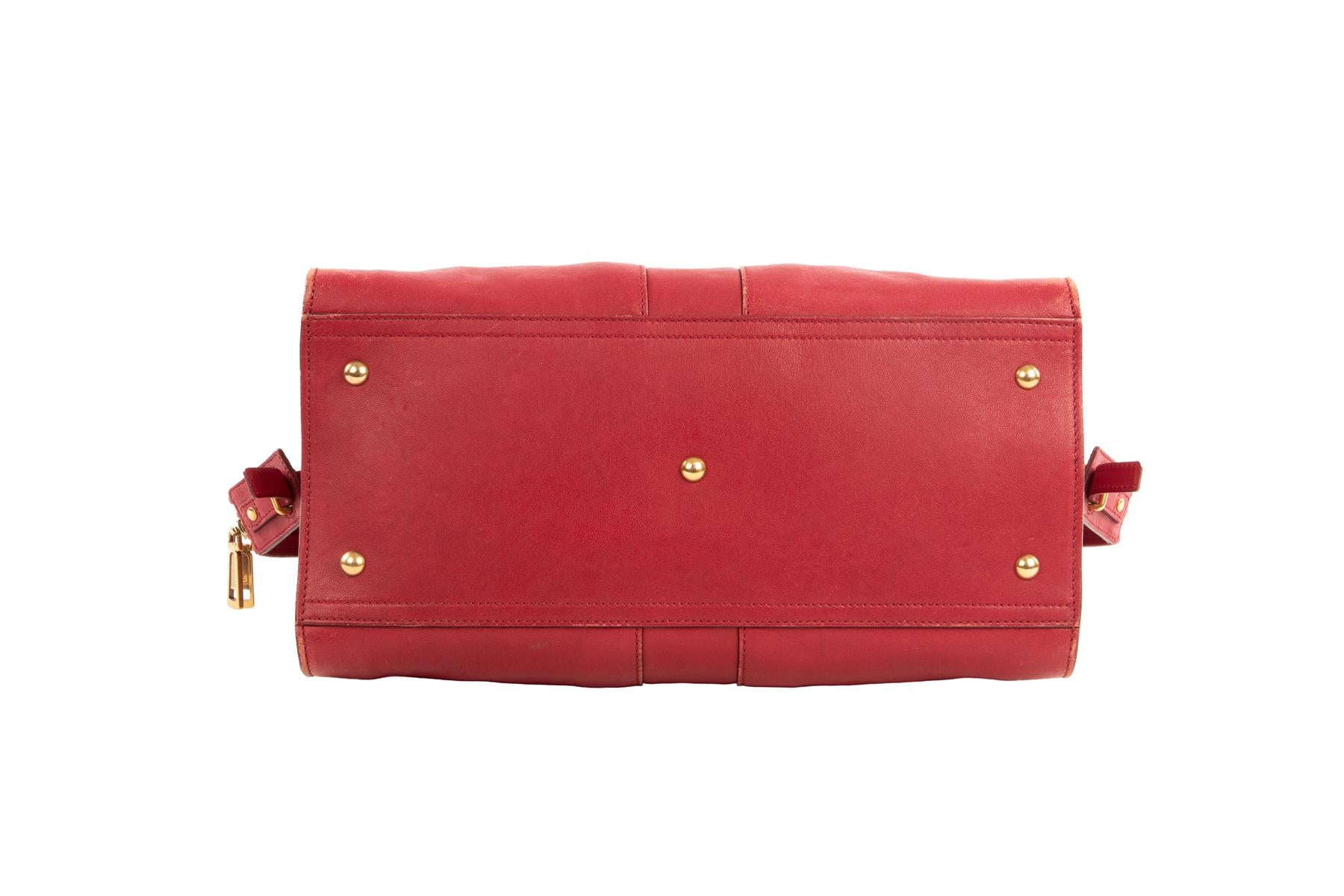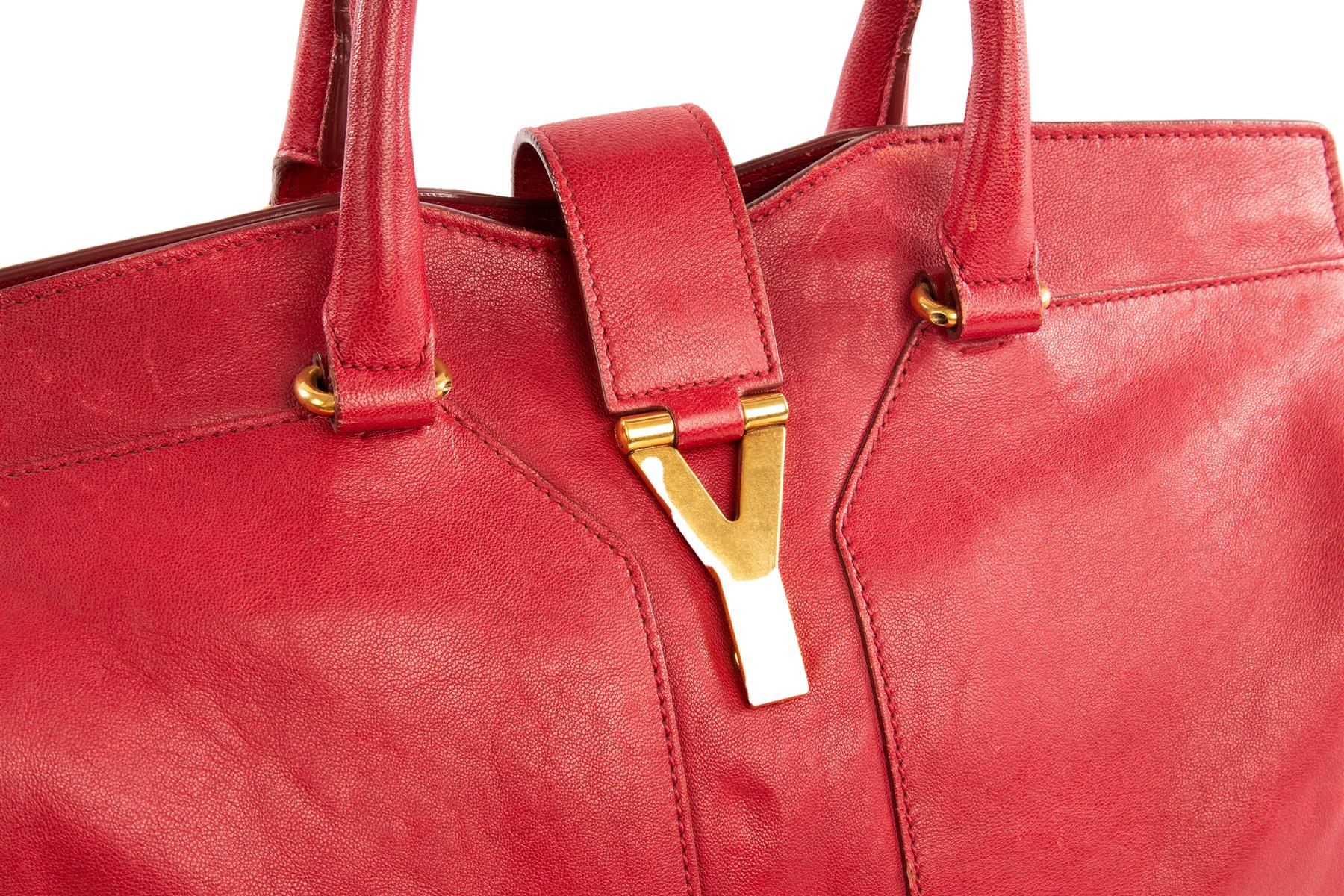 YVES SAINT LAURENT RED CABAS CHYC LEATHER TOTE BAG
