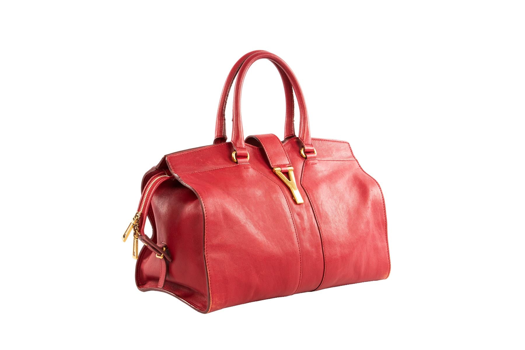 Yves Saint Laurent Red Cabas Chyc Leather Tote Bag. Red. Zip fastening - Top. One Size.. Height: 10 in. Width: 14 in. Depth: 8 in. Handle drop: 6 in.