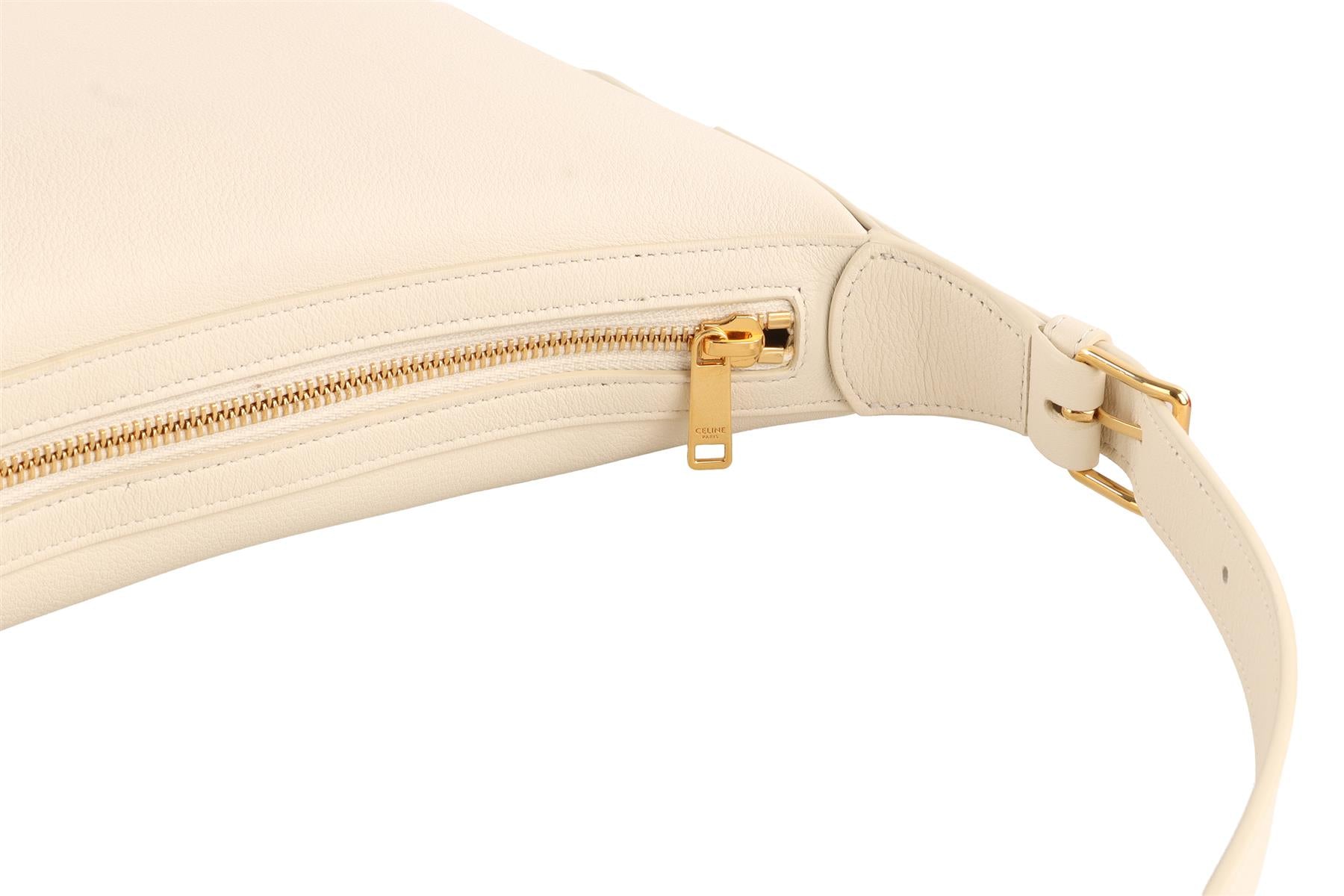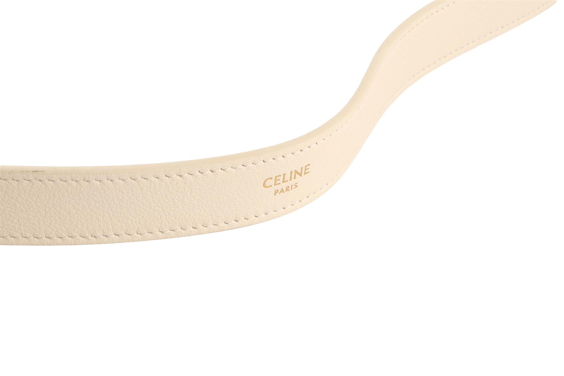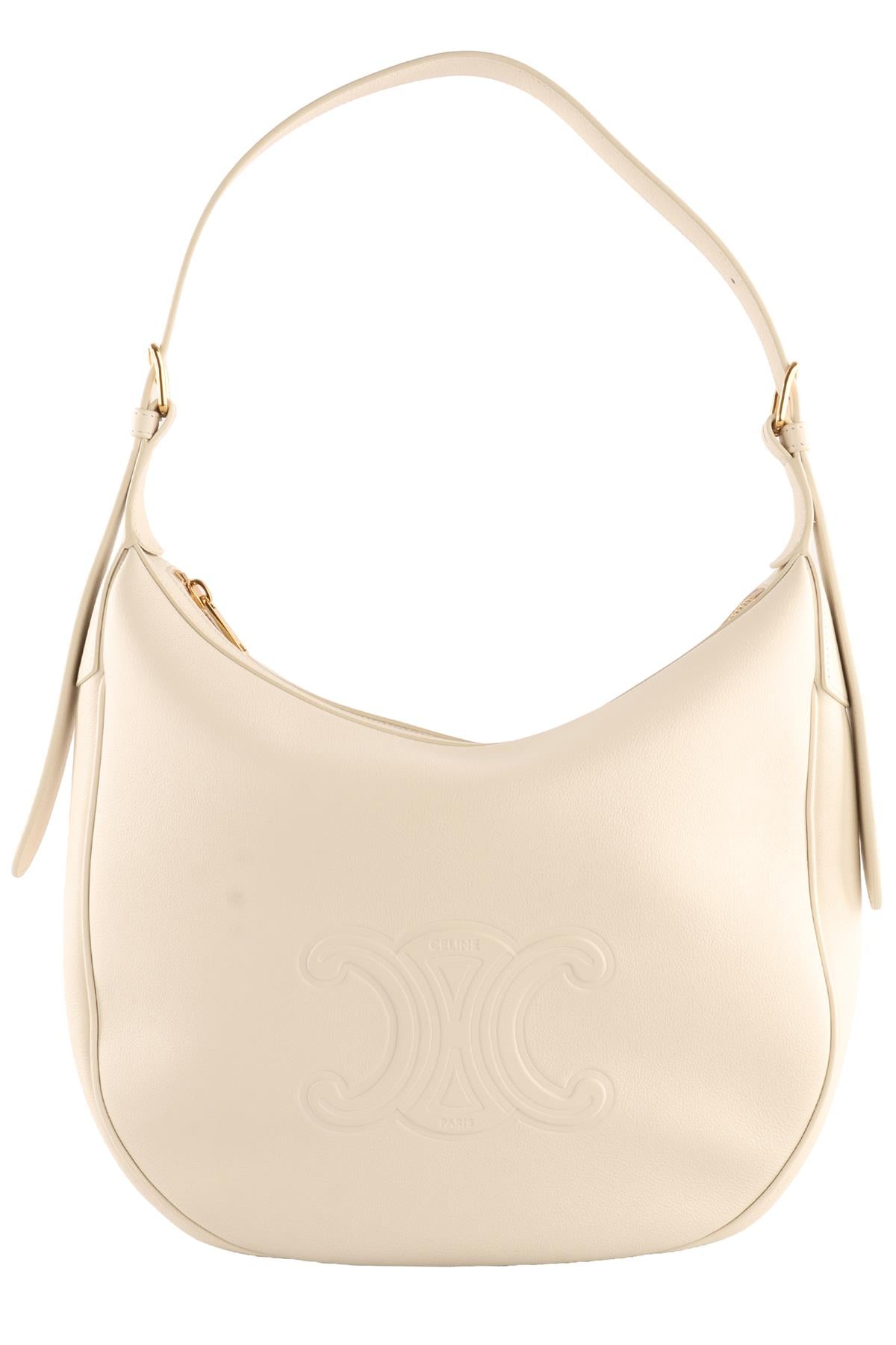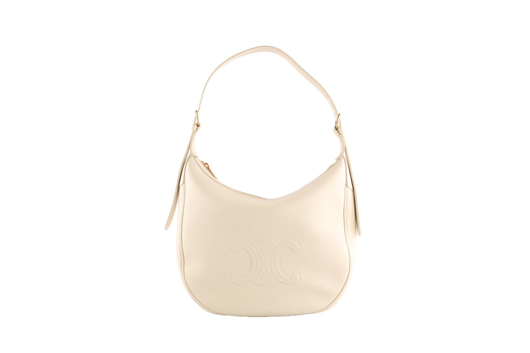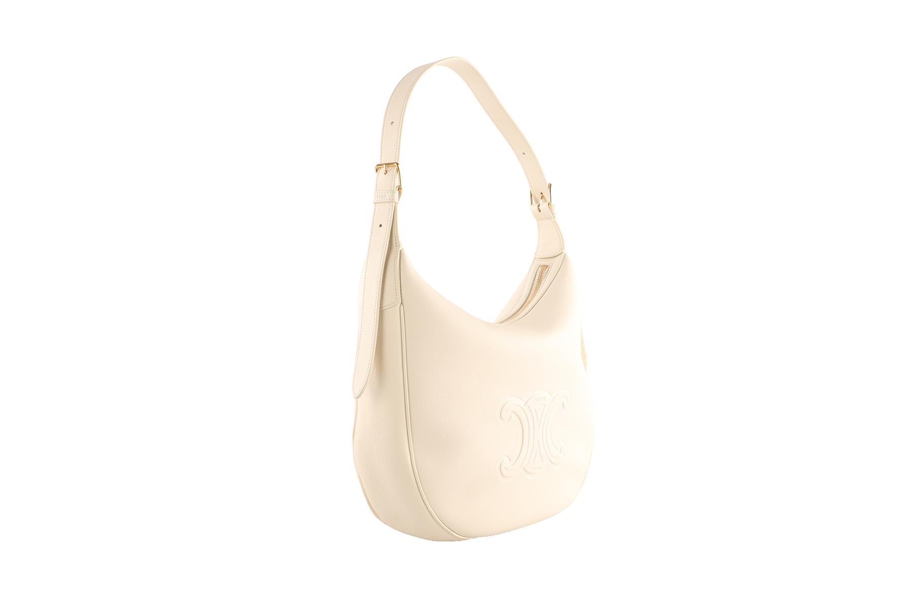 Celine Ivory Heloise Medium Triomphe Leather Shoulder Bag. Ivory. Zip fastening - Top. Does not come with - dustbag or box. Height: 11 in. Width: 13.5 in. Depth: 4 in. Handle drop: 11 in.