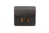 • Hermès Black 2020 Constance Compact Epsom Leather Wallet.