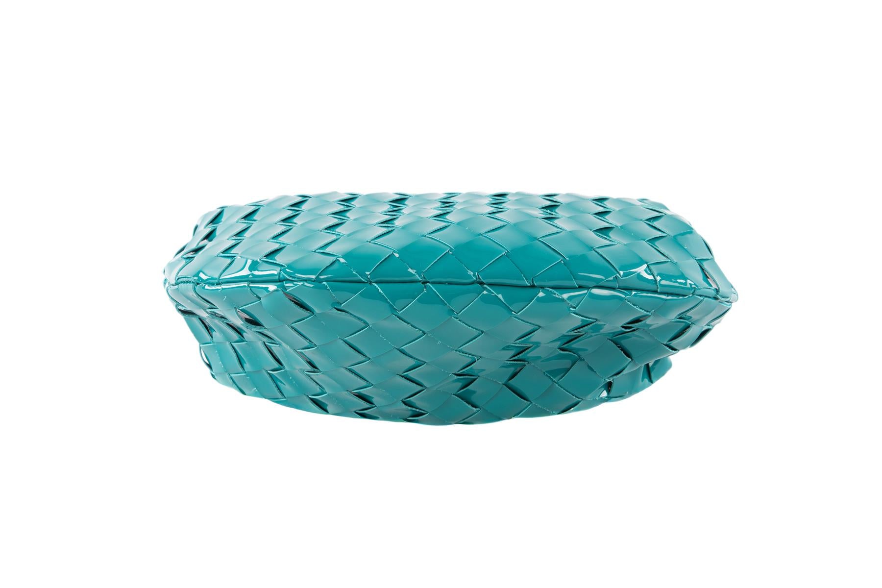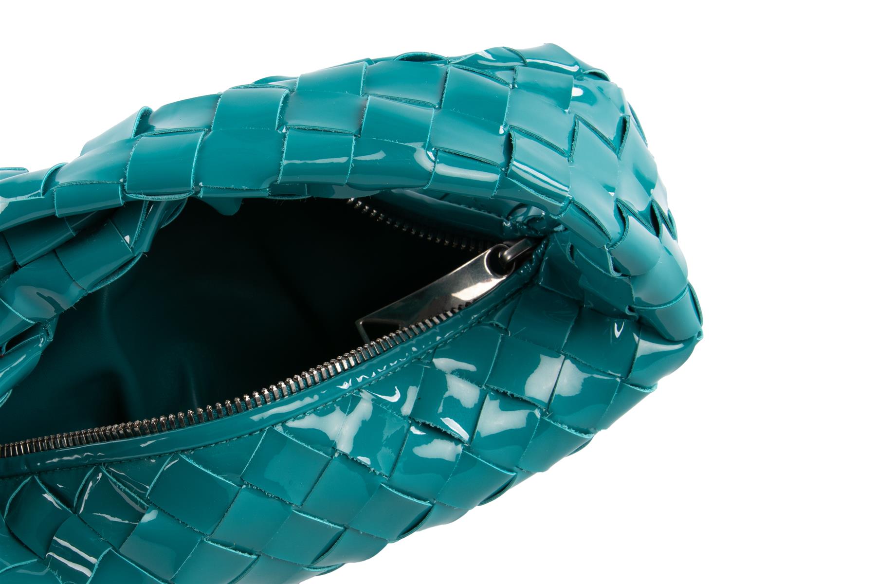 Bottega Veneta Blue Jodie Mini Intrecciato Patent Leather Tote Bag. Blue. Zip fastening - Top. Does not come with - dustbag or box. One Size.. Height: 5 in. Width: 10 in. Depth: 3.5 in. Handle drop: 3 in.