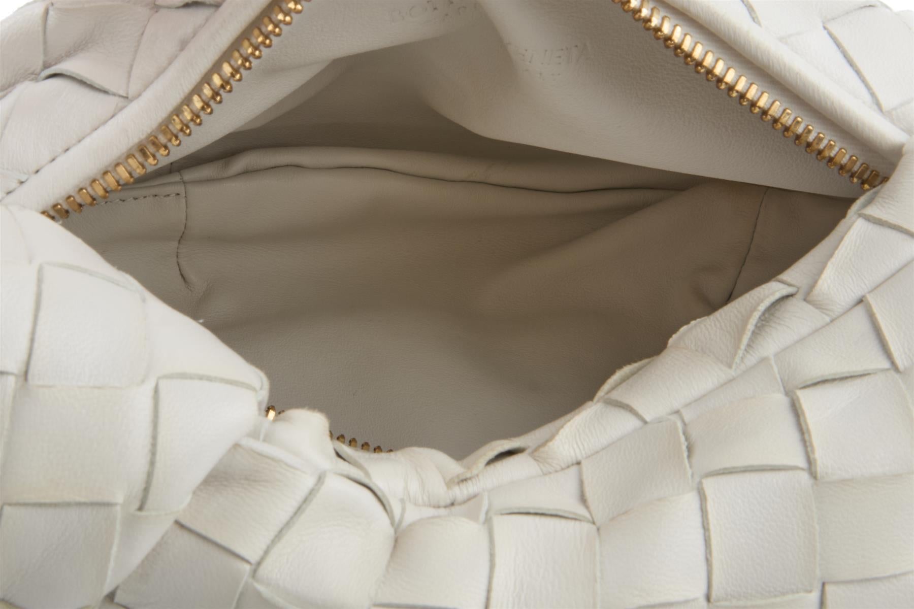 Bottega Veneta Ecru Jodie Mini Intrecciato Leather Tote Bag. Ecru. Zip fastening - Top. Jodie. Height: 6 in. Width: 11 in. Depth: 3.5 in. Handle drop: 3 in.