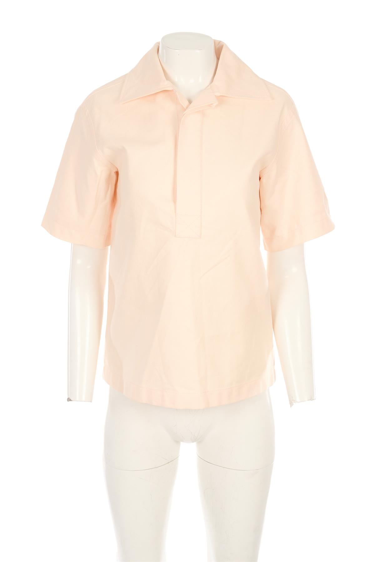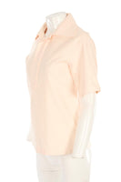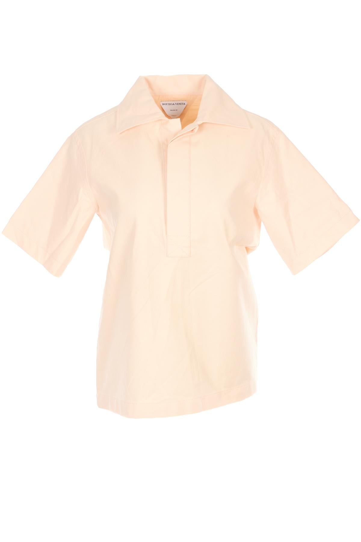 Bottega Veneta Peach Cotton Shirt. Peach. Short Sleeve. Crewneck. Button fastening - Front. 100% Cotton. IT 40 (UK 8, US 4, FR 36). Bust: 36 in. Waist: 38 in. Hips: 40 in. Length: 25 in.