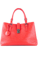BOTTEGA VENETA RED ROMA LARGE INTRECCIATO LEATHER TOTE BAG