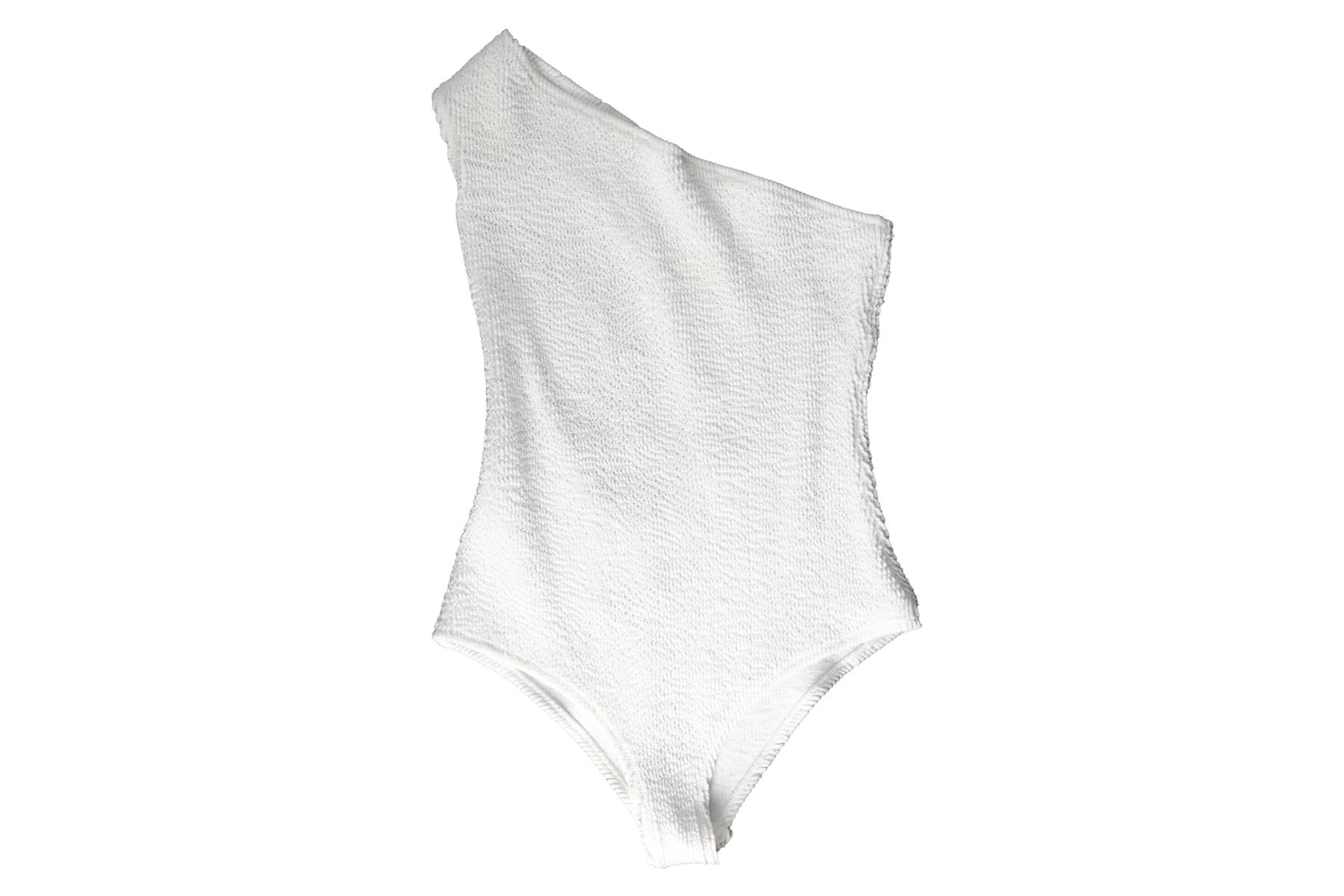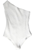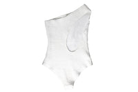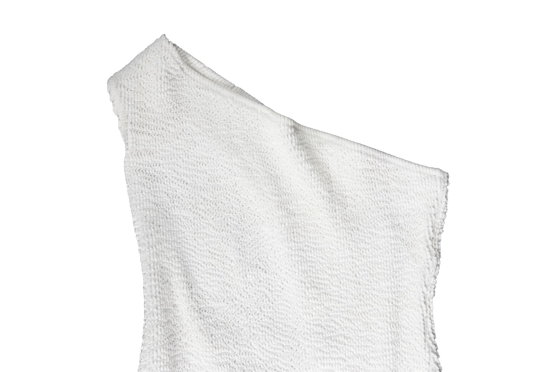 Bottega Veneta White Swimsuit. White. Sleeveless. Asymmetric. Pull on. 97% Polyamide, 3% Elastane. IT 42 (UK 10, US 6, FR 38). Bust: 24 in. Waist: 23 in. Hips: 28 in. Length: 21 in.