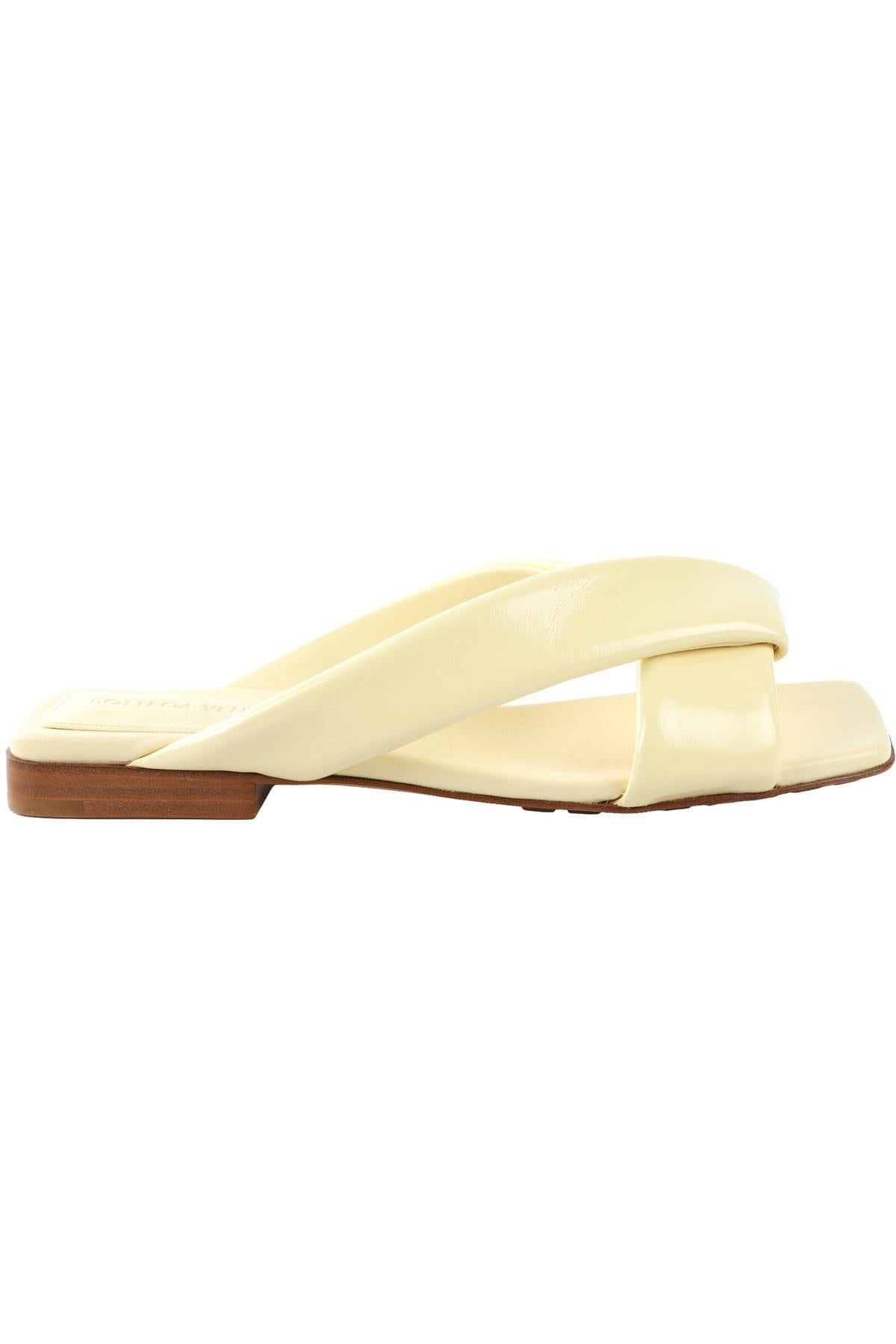 Bottega Veneta Yelllow Cushion Lux Leather Sandals. Yellow. Slips on. Does not come with - dustbag or box. EU 38 (UK 5, US 8). Insole: 9 in. Heel Height: 1 in.