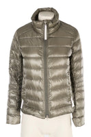 Canada Goose Green Padded Down Jacket. Green. 100% Polyamide, 100% Polyamide, 90% Duck Down, 10% White Duck Feather. Small (UK 8, US 4, FR 36, IT 40). Bust: 39 in. Waist: 37 in. Hips: 42 in. Length: 23.5 in.