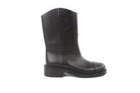 CHANEL BLACK 2024 CC LEATHER BOOTS EU 38 UK 5 US 8