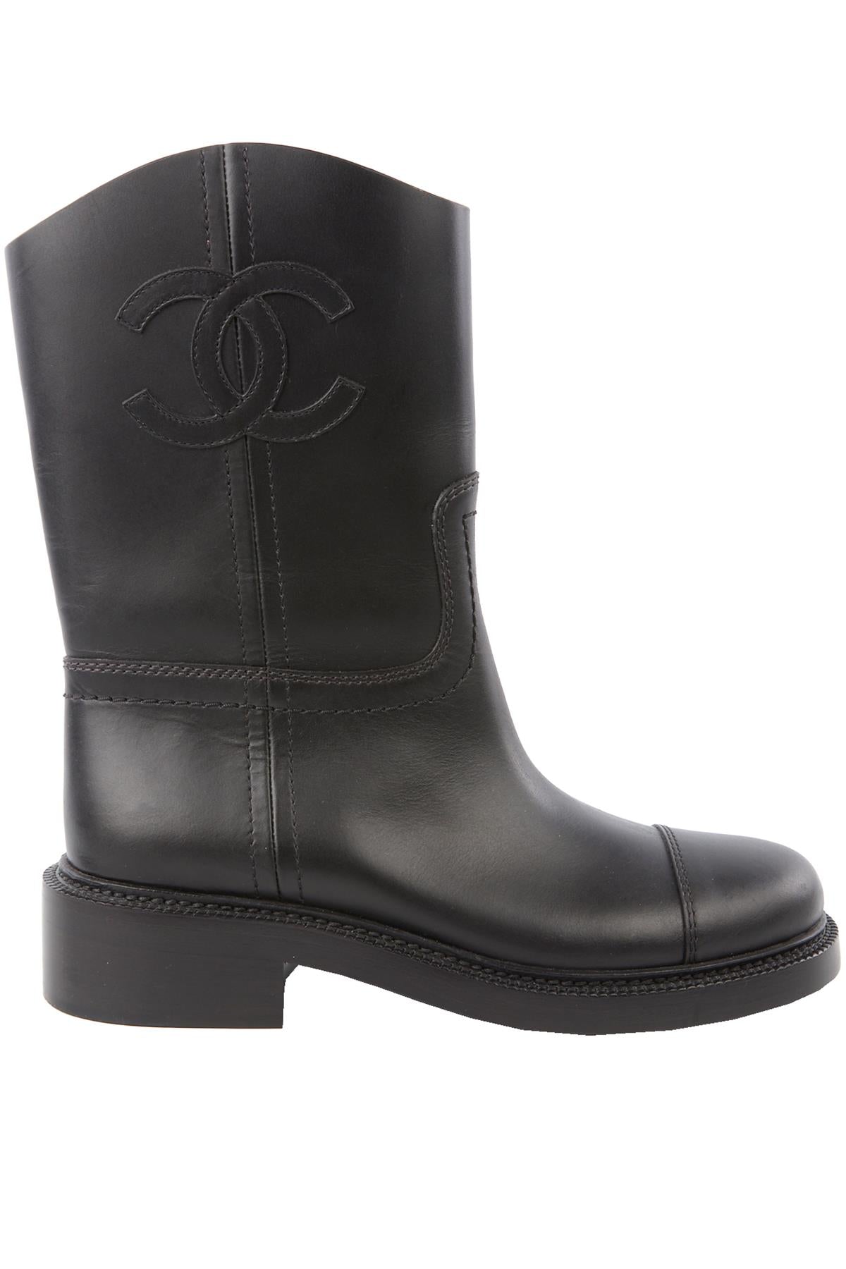 Chanel Black 2024 Cc Leather Boots. Black. Slips on. Does not come with - dustbag or box. EU 38 (UK 5, US 8). Insole: 9.25 in. Heel Height: 1.5 in.