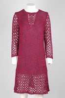 CHANEL RED 2014 CROCHET MIDI DRESS FR 40 UK 12