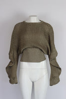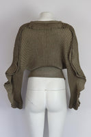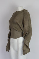 CHLOÉ RUFFLED METALLIC RIBBED SILK BLEND SWEATER MEDIUM