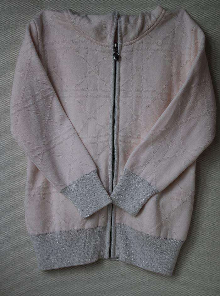 Pink knitted tracksuit by Chrisitan Dior with a sparkly silver band trim.