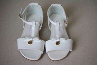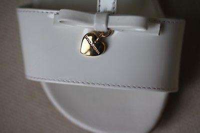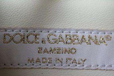 Dolce and Gabbana Shoes. Girls white patent leather sandals by Dolce and Gabbana. These gorgeous sandals have a delicate ankle strap with buckle fastening and a t-bar down the foot. They are open-toed and have a small bow with a gold-coloured heart logo. Size - EU 24 (UK 7, US 8) RRP: £195 Ref: TS1