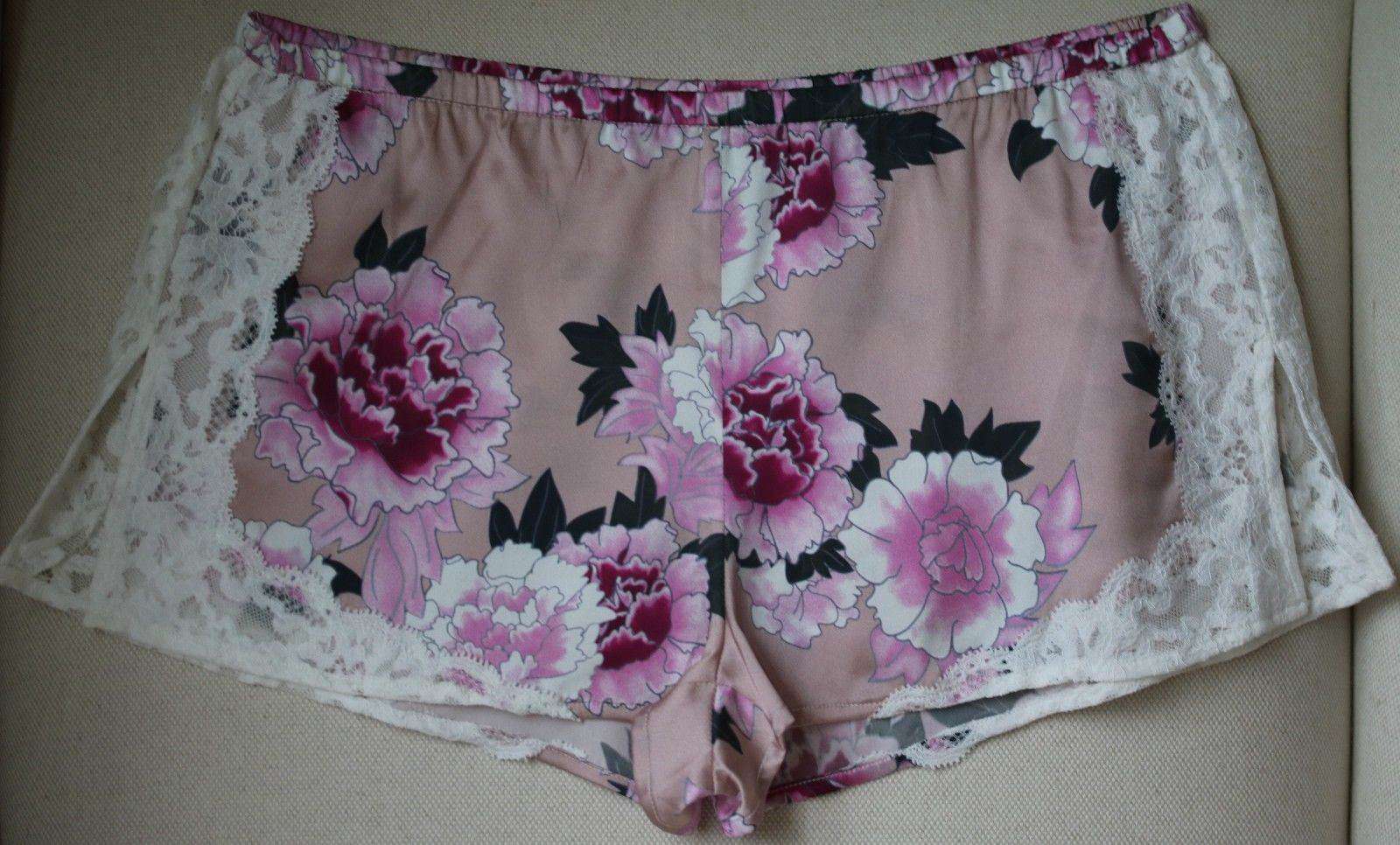 FLEUR DU MAL CHARLOTTE LACE & SILK TAP SHORTS SMALL