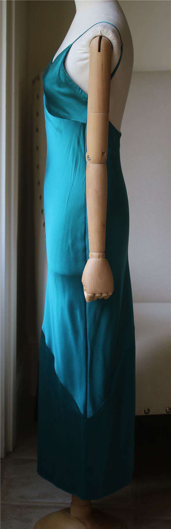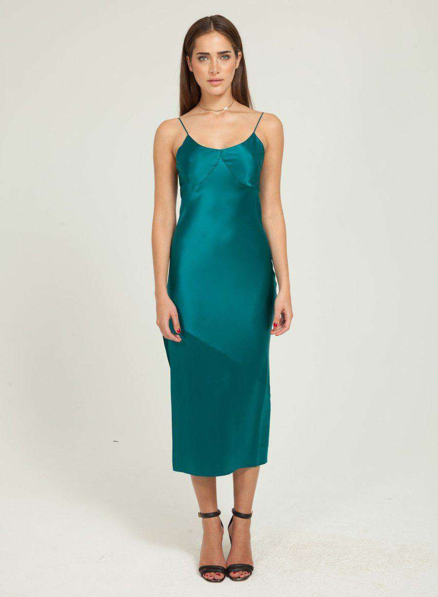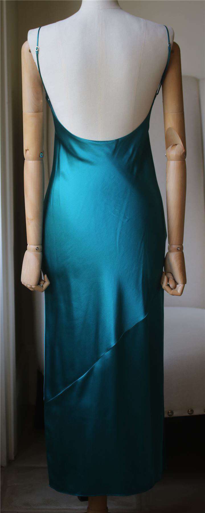 FLEUR DU MAL JADE GREEN BIAS SLIP GOWN DRESS SMALL