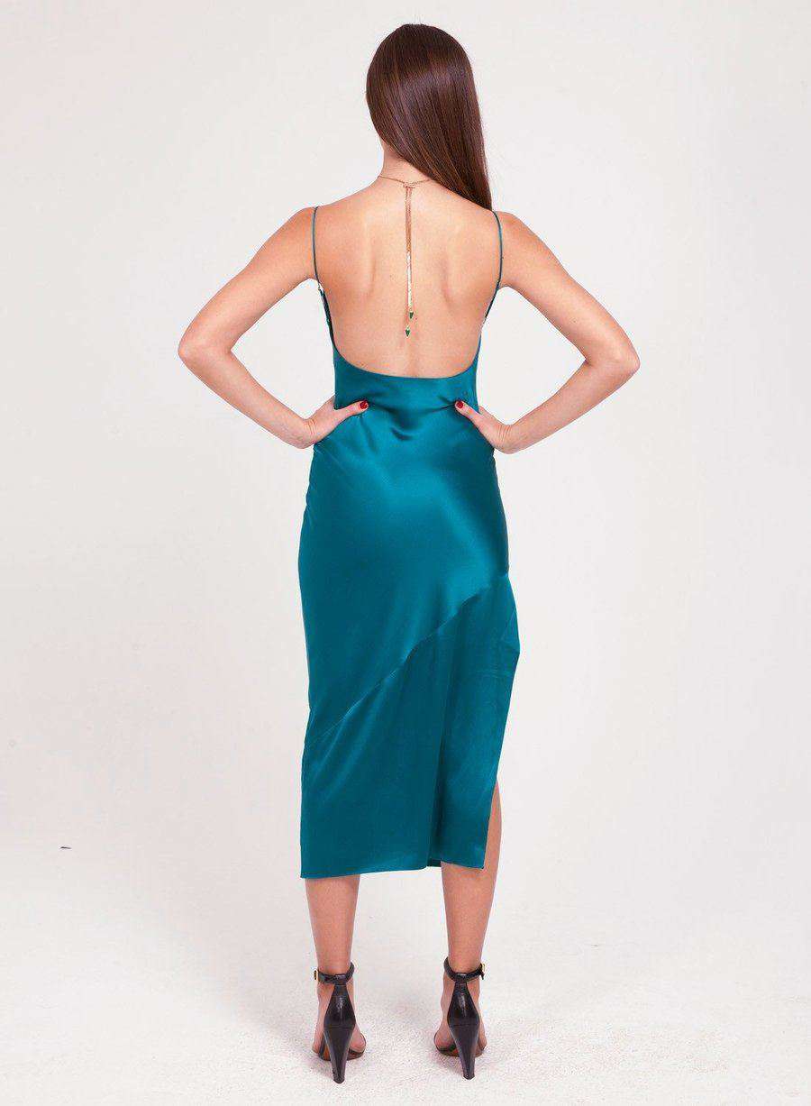 The perfect silk slip gown in Fleur du Mal's signature Bias cut. Hits mid-calf with slit on one side. Low scoop back with adjustable straps.